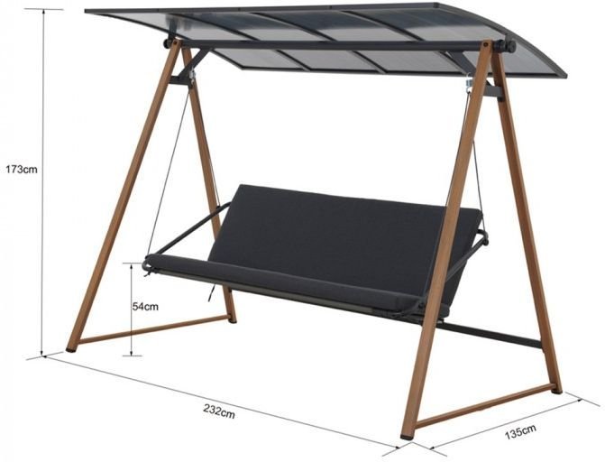 Stahlrahmen und Polycarbonat-Dach: Gartenschaukel Duisburg – Mirpol. Diese elegante und zugleich funktionale Schaukel für drei Personen vereint modernes Design mit robuster Bauweise und sorgt so für langanhaltende Freude und entspannte Stunden im Freien. Mit ihren großzügigen Maßen von 232 × 135 × 173 cm bietet sie genügend Platz zum gemütlichen Sitzen, während die pulverbeschichtete Stahlkonstruktion Stabilität und Witterungsbeständigkeit garantiert. Dank der hochwertigen Materialkombination aus Stahl, Polyester und Oxford-Gewebe ist das Modell Duisburg die ideale Wahl für Terrasse, Garten oder einen größeren Balkon.