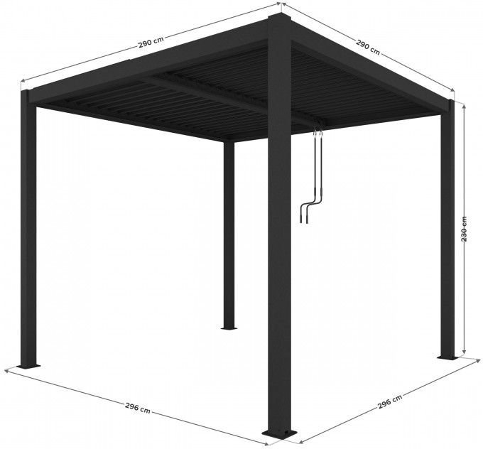 Die Gartenpergola mit den Maßen 3 x 3 Meter ist eine ideale Lösung für eine stilvolle Überdachung im Außenbereich. Sie kann direkt an der Hauswand oder freistehend im Garten oder auf der Terrasse aufgestellt werden. Die Konstruktion ist mit einer effektiven LED-Beleuchtung ausgestattet, die besonders abends für eine stimmungsvolle Atmosphäre sorgt. Das Dach besteht vollständig aus Aluminium, was es besonders langlebig und korrosionsbeständig macht. Dank der hochwertigen Materialien werden Sie lange Freude an dieser Pergola haben.