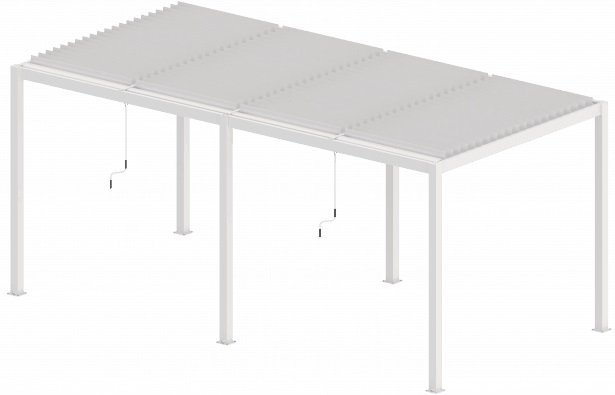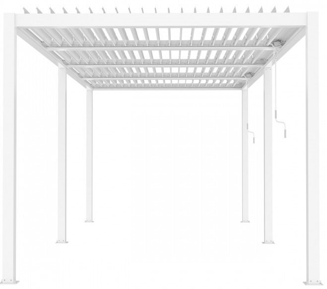 Die Pergola kann mit geschlossenen Paneelen oder Sonnenschutzwänden erweitert werden. So entsteht ein Bereich, in dem Sie sich bei jedem Wetter wohlfühlen können. Die Seitenwände lassen sich flexibel konfigurieren, damit der Raum optimal an Ihre Bedürfnisse angepasst ist. Ein weiterer Pluspunkt ist das Dach, das mit einem praktischen manuellen Öffnungssystem ausgestattet ist – so können Sie den Lichteinfall und Schatten ganz nach Wunsch regulieren.