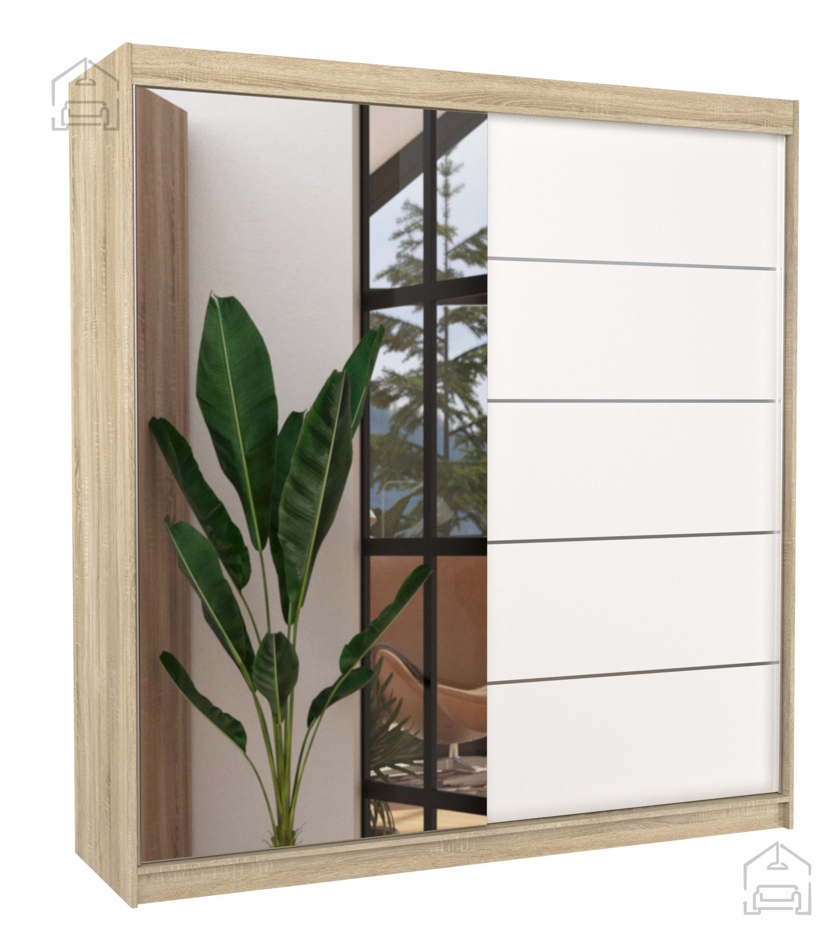 Ein gut organisierter und funktionaler Kleiderschrank ist der Schlüssel zu einem angenehmen Alltag. Daher ist Möbel, das Ästhetik, Stauraum und praktische Nutzung vereint, die richtige Wahl. Der Schwebetürenschrank Oliver in der Kombination aus Sonoma-Eiche und Weiß bringt ein modernes Flair in Ihr Zuhause und passt sowohl zu klassischen als auch zu zeitgemäßen Einrichtungsstilen. Mit seinen Maßen von 200x58x215 cm bietet er reichlich Stauraum und spart dank des Schiebetürsystems wertvollen Platz im Zimmer.