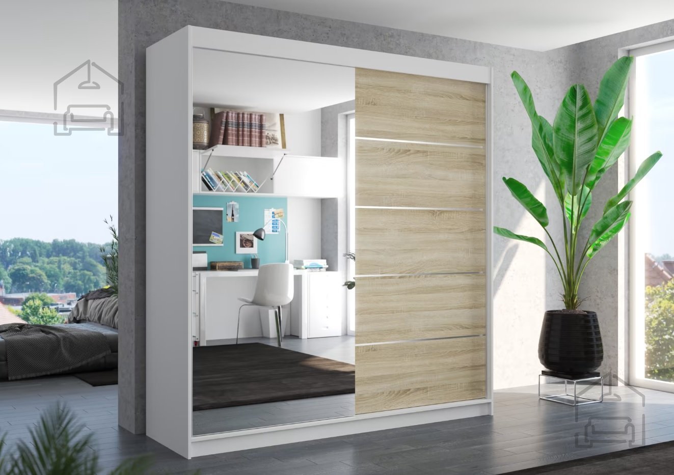 Perfekte Raumorganisation ist kein Problem mehr, sondern ein angenehmes Erlebnis. Der Kleiderschrank mit Schiebetüren Oliver (200 cm) ist ideal für alle, die Funktionalität, Eleganz und modernes Design schätzen. Dank der Kombination aus weißem Korpus und Fronten in warmer Sonoma-Eiche passt er mühelos zu verschiedensten Einrichtungsstilen – von minimalistisch bis klassisch.