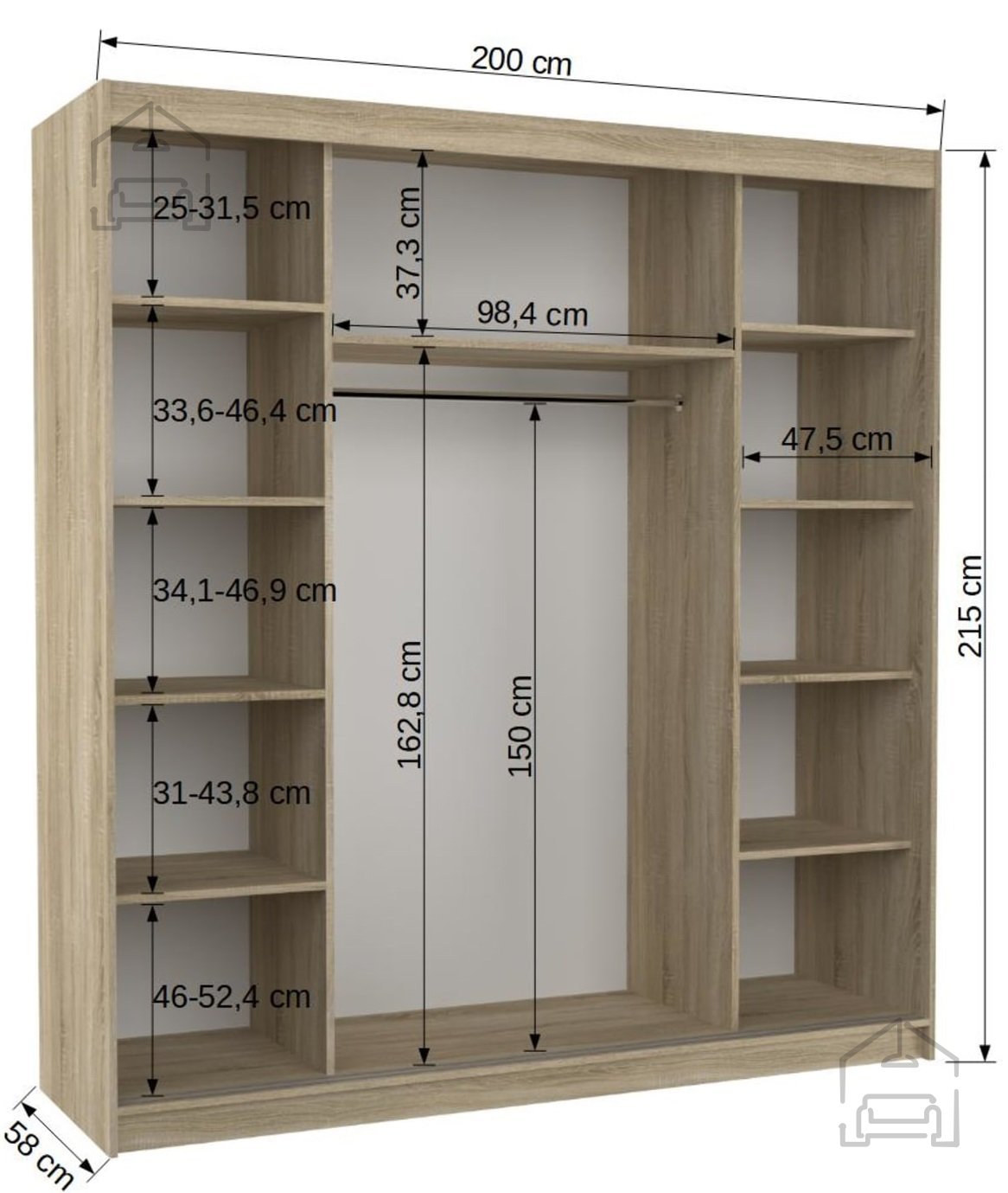 Ein Schrank mit Schiebetüren ist weit mehr als nur Stauraum – er ist ein Möbelstück, das über Jahre hinweg seinen Zweck erfüllt und mit seinem modernen Look das Gesamtbild Ihres Zuhauses abrundet. Wenn Sie Wert auf Ordnung, Übersicht und ein stimmiges Ambiente legen, ist dieser Kleiderschrank die richtige Wahl. Seine praktische Handhabung, Benutzerfreundlichkeit und das zeitgemäße Design werden auch anspruchsvolle Nutzer überzeugen.