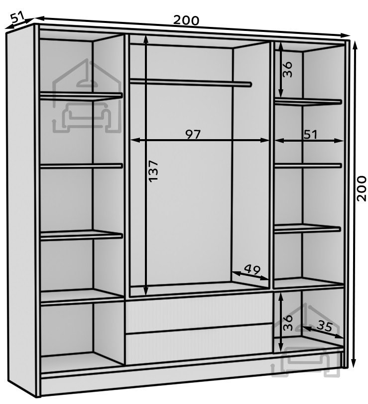 Im Inneren überzeugt der Schrank mit einer gut durchdachten Aufteilung, die eine geordnete Aufbewahrung Ihrer Kleidung ermöglicht. Regale und Kleiderstange sorgen dafür, dass alles übersichtlich verstaut und schnell griffbereit ist. So sparen Sie Zeit und behalten stets Ordnung – Ihre Garderobe wirkt immer gepflegt und aufgeräumt.