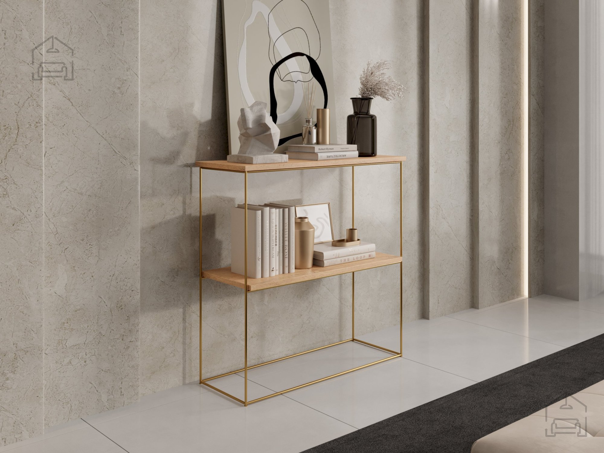 Die perfekte Balance zwischen Eleganz, Funktionalität und modernem Design – genau das zeichnet diesen sorgfältig gestalteten Schminktisch aus. Mit seiner Kombination aus warmem Lancelot-Eichen-Dekor und einem edlen goldfarbenen Metallgestell wird er zu einem unverzichtbaren Möbelstück in jedem zeitgemäßen Zuhause. Dank der kompakten Maße von 80x30x80 cm lässt er sich mühelos auch in kleinere Räume integrieren und bietet dennoch ausreichend Platz für den täglichen Gebrauch.