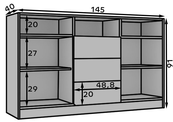 Egal, ob Sie zusätzlichen Stauraum benötigen oder Ihrem Zuhause einen neuen Look verleihen möchten – diese zweitürige Kommode vereint Design, Qualität und Funktionalität in einem. Mit ihren Maßen von 145x40x91 cm fügt sie sich harmonisch in verschieden große Räume ein, ohne überladen zu wirken. Ihre Vielseitigkeit erlaubt es, sie sowohl als Einzelstück als auch als Teil eines größeren Möbelensembles zu nutzen.