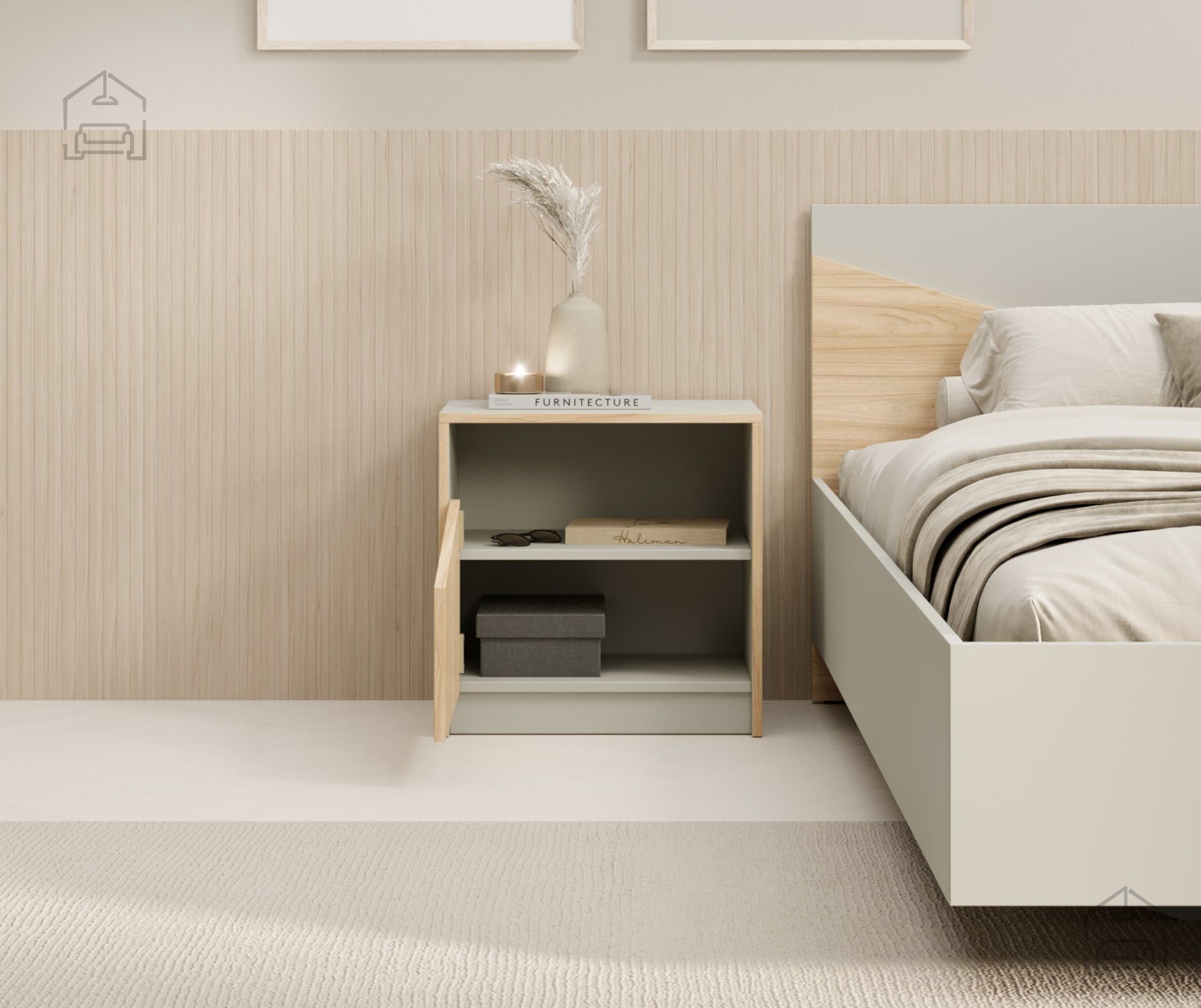Gestalten Sie Ihr Schlafzimmer zu einem Ort voller Komfort und Stil. Der Nachttisch Atson bietet die perfekte Balance zwischen modernem Design und der Funktionalität, die Sie täglich brauchen. So entsteht ein Raum, in dem Ordnung und Ästhetik Hand in Hand gehen – und jedes Detail zählt.