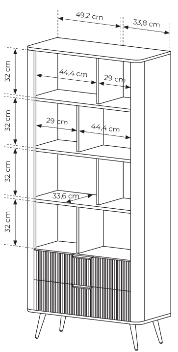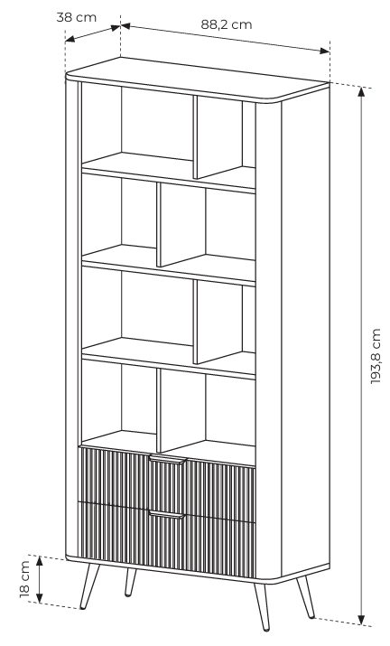 Das Set Lante ermöglicht es Ihnen, eine harmonische und sanfte, aber gleichzeitig modische und schicke Anordnung zu schaffen. Die warme beige Farbe bringt Ruhe und Ausgeglichenheit in den Innenraum, die perfekt mit goldenen Akzenten harmonieren, wodurch der Raum gleichzeitig angenehm und elegant wirkt. Abgerundete Kanten und gerillte Fronten verleihen den Möbeln Modernität und Originalität. Auf der Rückseite des Bücherregals wird eine beige HDF-Platte mit Holzstruktur verwendet. Lante ist ein Set, das für Liebhaber moderner Formen und subtiler, glamouröser Farben geschaffen wurde.