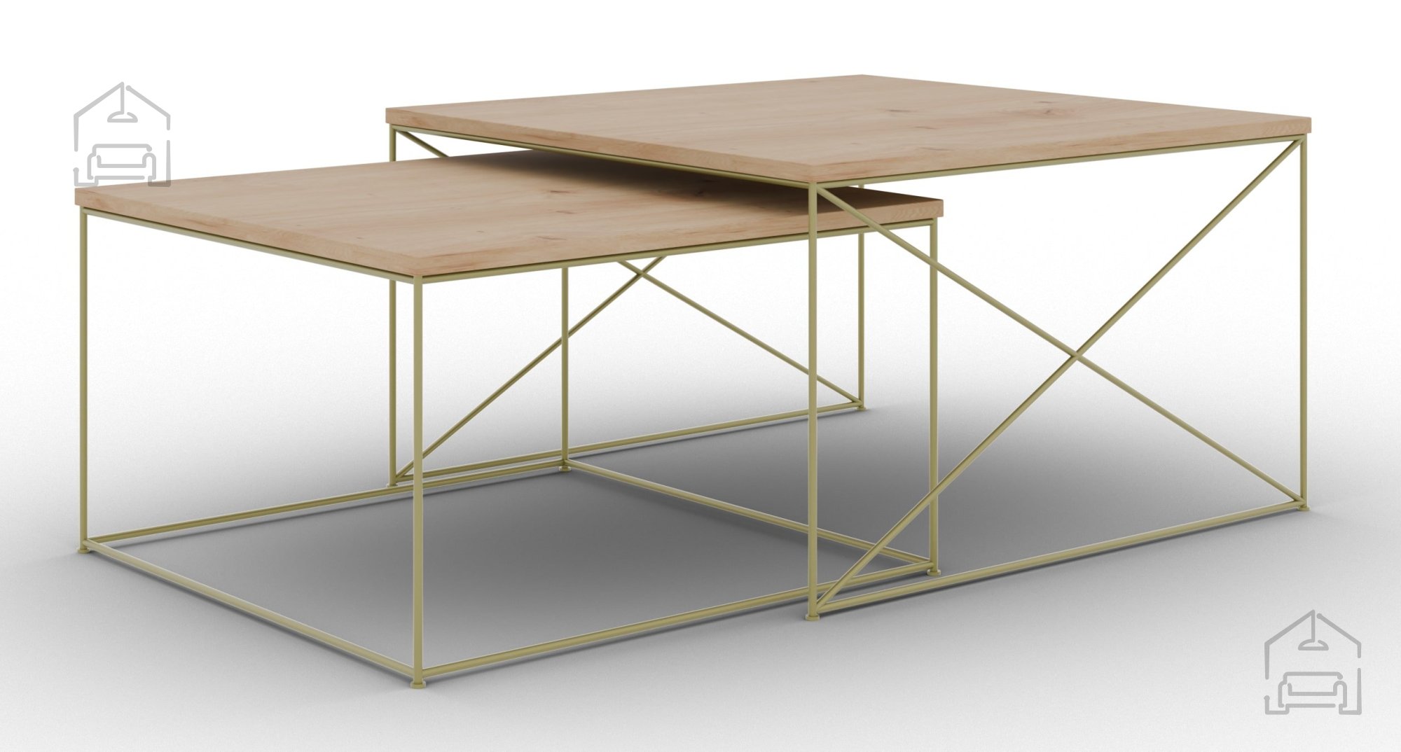 Elegantes Design, Funktionalität und ein Hauch modernen Luxus – all das vereint das 2-teilige Couchtisch-Set Licco in der Farbe Gold/Artisan. Es handelt sich um eine praktische und zugleich stilvolle Lösung für jedes Wohnzimmer, die Ihrem Zuhause Wärme, Behaglichkeit und eine edle Note verleiht. Durch die Kombination aus hochwertiger laminierter Platte und sorgfältig abgestimmten Farbtönen passt dieses Tisch-Set perfekt in moderne wie auch klassisch eingerichtete Wohnräume.