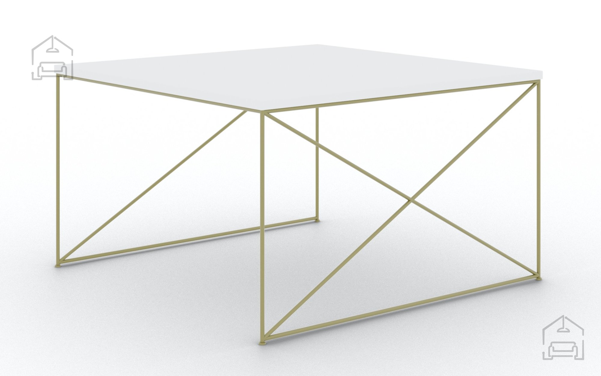 Mit den Maßen 75x75x43 cm bietet der Tisch ausreichend Platz für den täglichen Gebrauch und bleibt dennoch kompakt genug, um auch in kleinere Wohnzimmer oder Arbeitsecken zu passen. Sein klarer, quadratischer Aufbau mit sanft abgerundeten Linien und goldfarbener Struktur wirkt besonders edel, während die matte weiße Platte für einen frischen, hellen und zeitgemäßen Look sorgt. Diese Kombination fügt sich wunderbar in verschiedenste Einrichtungsstile ein – von skandinavischer Schlichtheit über moderne Interieurs bis hin zu glamourösen Wohnkonzepten.