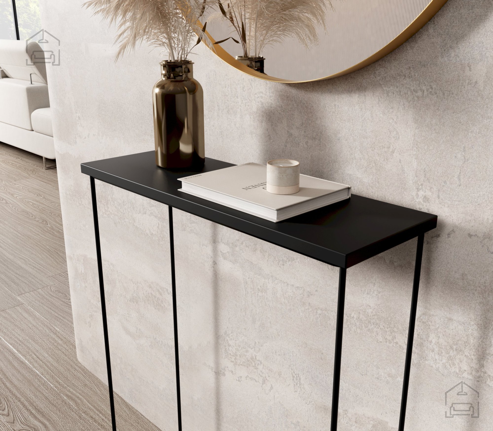 Sind Sie auf der Suche nach einem Möbelstück, das Eleganz, Funktionalität und zeitlose Schlichtheit vereint? Dann ist dieser moderne Konsolentisch genau das Richtige für Sie. Mit seinem minimalistischen Design und der edlen schwarzen Farbe passt er perfekt zu vielen Einrichtungsstilen – von modernen Stadtwohnungen bis hin zu klassisch gestalteten Häusern. Durch seine schmale, aber praktische Form lässt er sich mühelos im Vorzimmer, Wohnzimmer, Schlafzimmer oder sogar im Büro platzieren und sorgt überall für ein Gefühl von Ordnung und Stil.