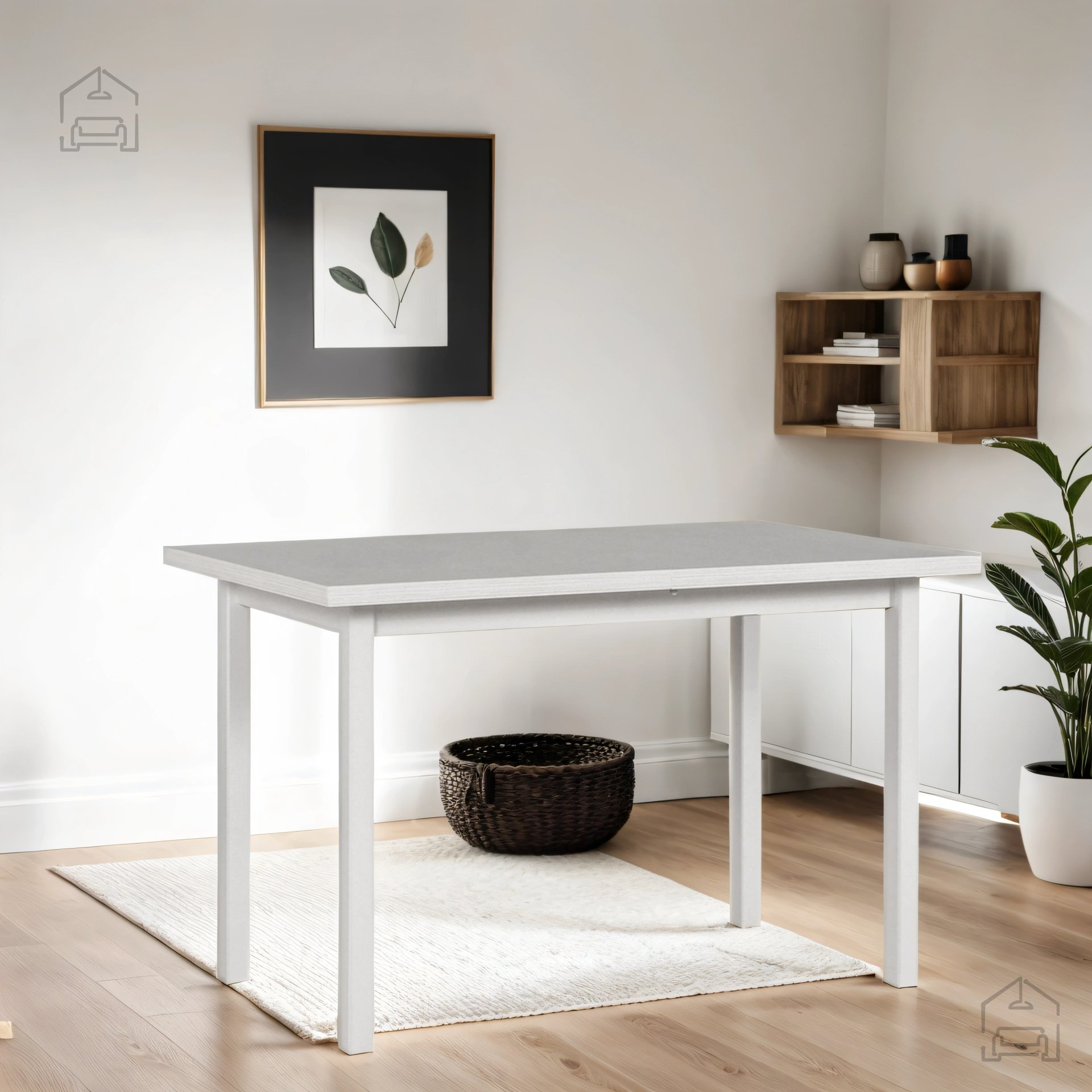 Der Tisch Max 3 harmoniert wunderbar mit Holz- oder Polsterstühlen in neutralen Tönen wie Grau, Beige oder Naturholz. Ebenso gut lässt er sich mit Metall-Accessoires und Lampen im modernen Industrial-Stil kombinieren. Durch seine weiße Farbe wirkt der Raum optisch größer – ideal also für kleinere Küchen, in denen jedes Detail zählt. Auch als Arbeitsplatz oder Basteltisch ist er bestens geeignet, da seine Oberfläche unterschiedlichste Anforderungen problemlos meistert.