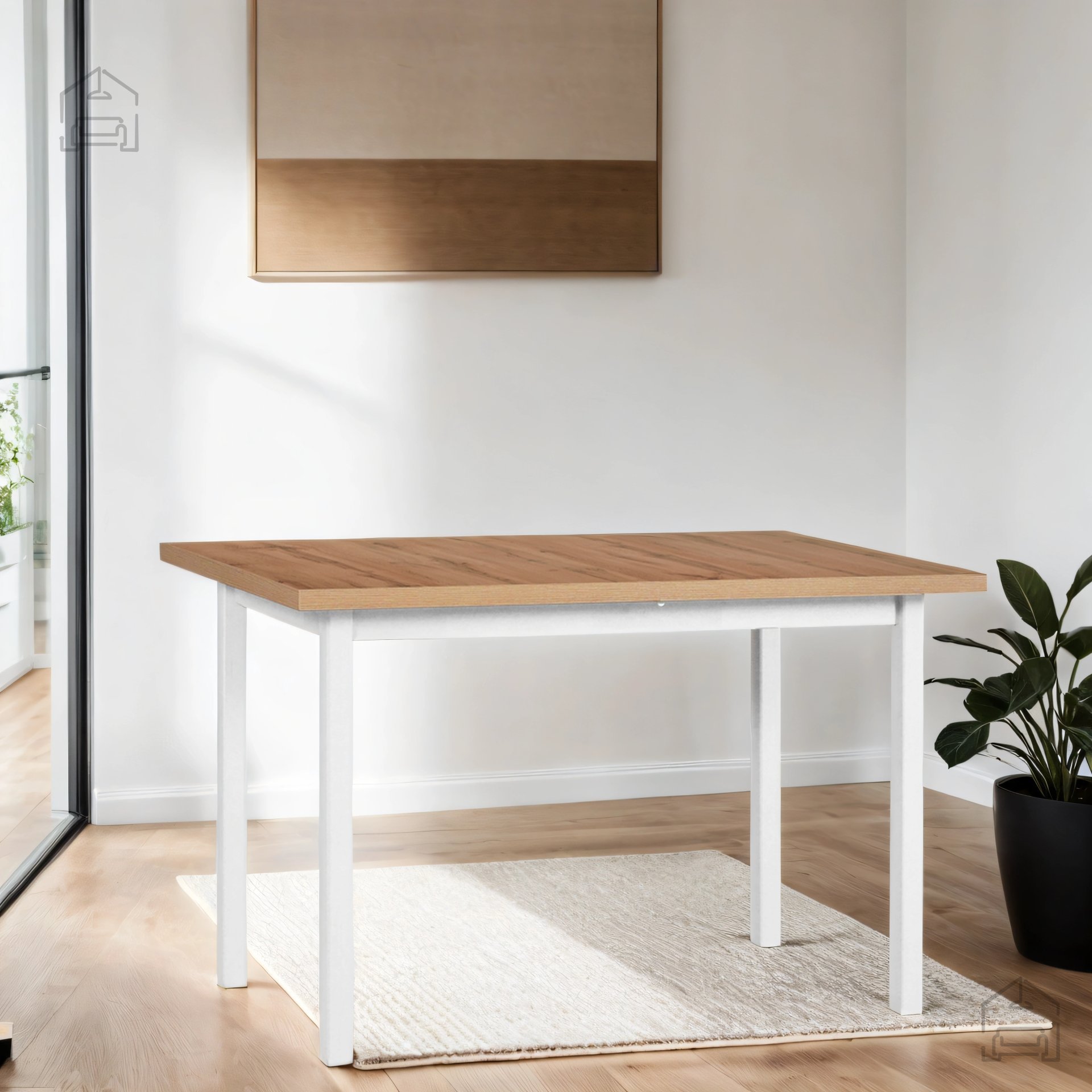 Der Esstisch Max 3 in der Farbkombination Weiß/Grandson ist ein gelungenes Beispiel für die Balance zwischen Design und Funktionalität, die der polnische Hersteller Drewmix mit traditionellem Holzhandwerk und modernem Formgefühl erreicht. Das Gestell aus massivem Buchenholz sorgt für Stabilität, Robustheit und eine natürliche Wärme, während die laminierte Platte kratzfest und pflegeleicht ist. Mit seinen Maßen von 120 × 70 × 75 cm passt der Tisch ideal in kleinere oder mittelgroße Essbereiche und bietet vier Personen bequem Platz, ohne beengt zu wirken.