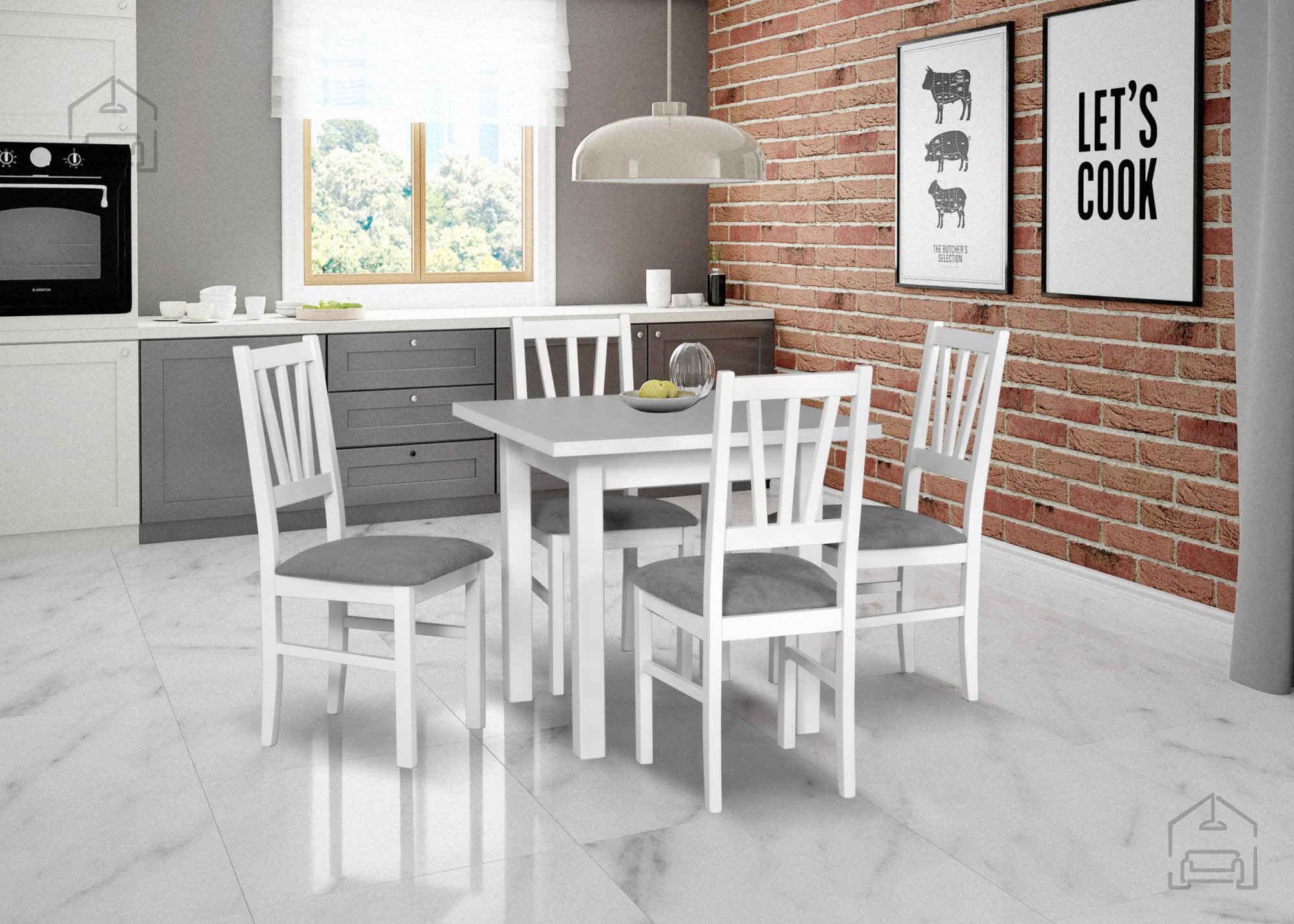 Die Maße des Tisches betragen Breite 80 cm, Tiefe 80 cm und Höhe 76 cm. Dank seiner kompakten Größe eignet er sich perfekt für kleinere Küchen oder Essbereiche, wo jeder Zentimeter zählt. Dennoch bietet er in der Grundversion bequem Platz für vier Personen und ausgezogen Platz für zwei weitere. Besonders schön wirkt er in Kombination mit Holz- oder Polsterstühlen in hellen Farbtönen, die sein klares Design unterstreichen.