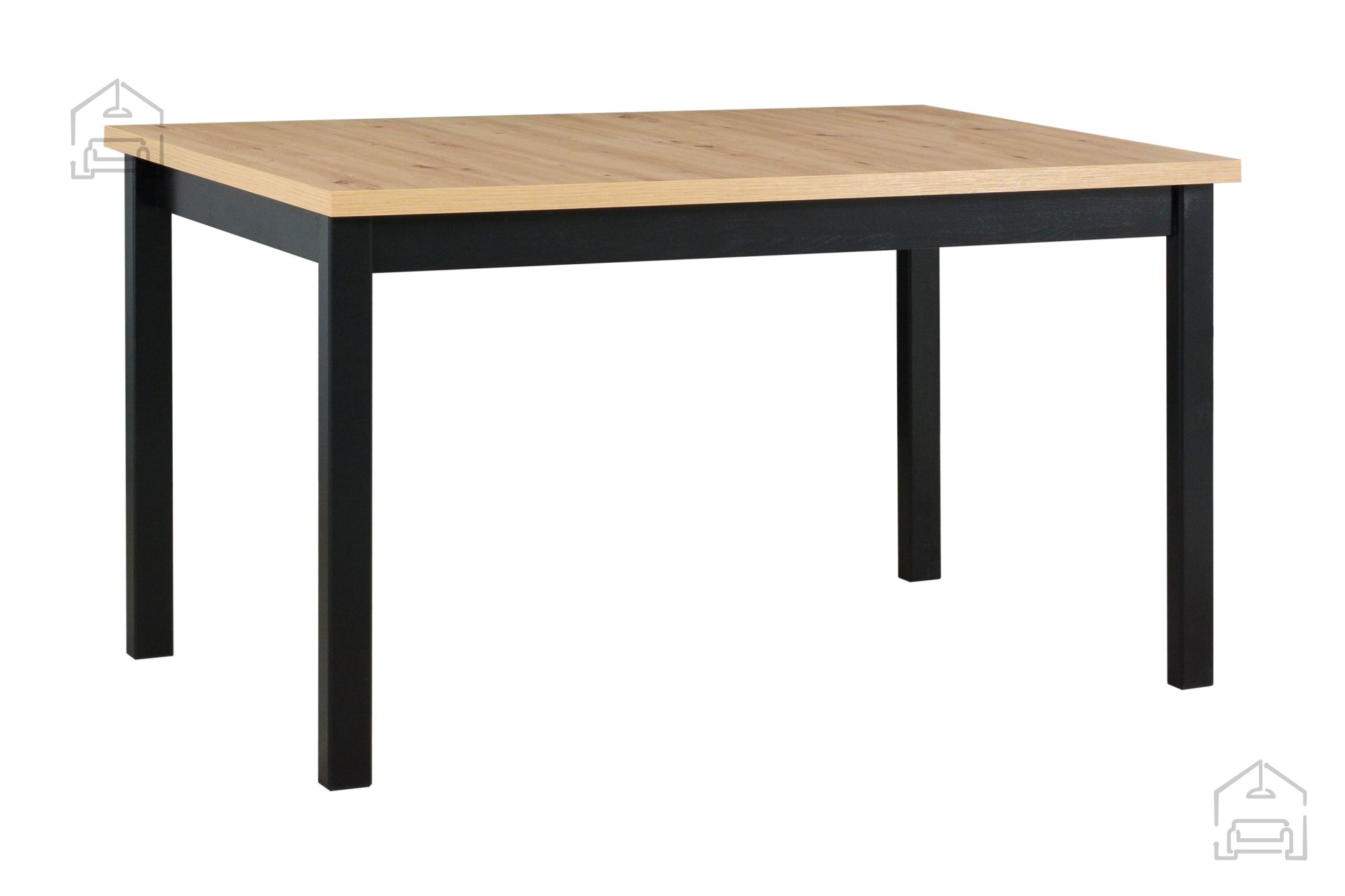 Die Basis des Esstisches Alba 2 M bildet ein stabiler Rahmen aus massivem Buchenholz, das durch seine Dichte und Festigkeit überzeugt. Buche wird seit Jahrhunderten wegen ihrer Langlebigkeit und der angenehmen, natürlichen Maserung geschätzt, die auch nach Jahren ihren Charme behält. Die Tischplatte ist mit Laminat überzogen, das die Oberfläche vor Kratzern, Flecken und Feuchtigkeit schützt. Die Kombination aus Schwarz und Artisan-Farbton schafft einen modernen Kontrast, der sowohl zu hellen als auch dunklen Möbeln passt. Durch das matte Finish wirkt der Tisch dezent und behält seine gemütliche, wohnliche Ausstrahlung.