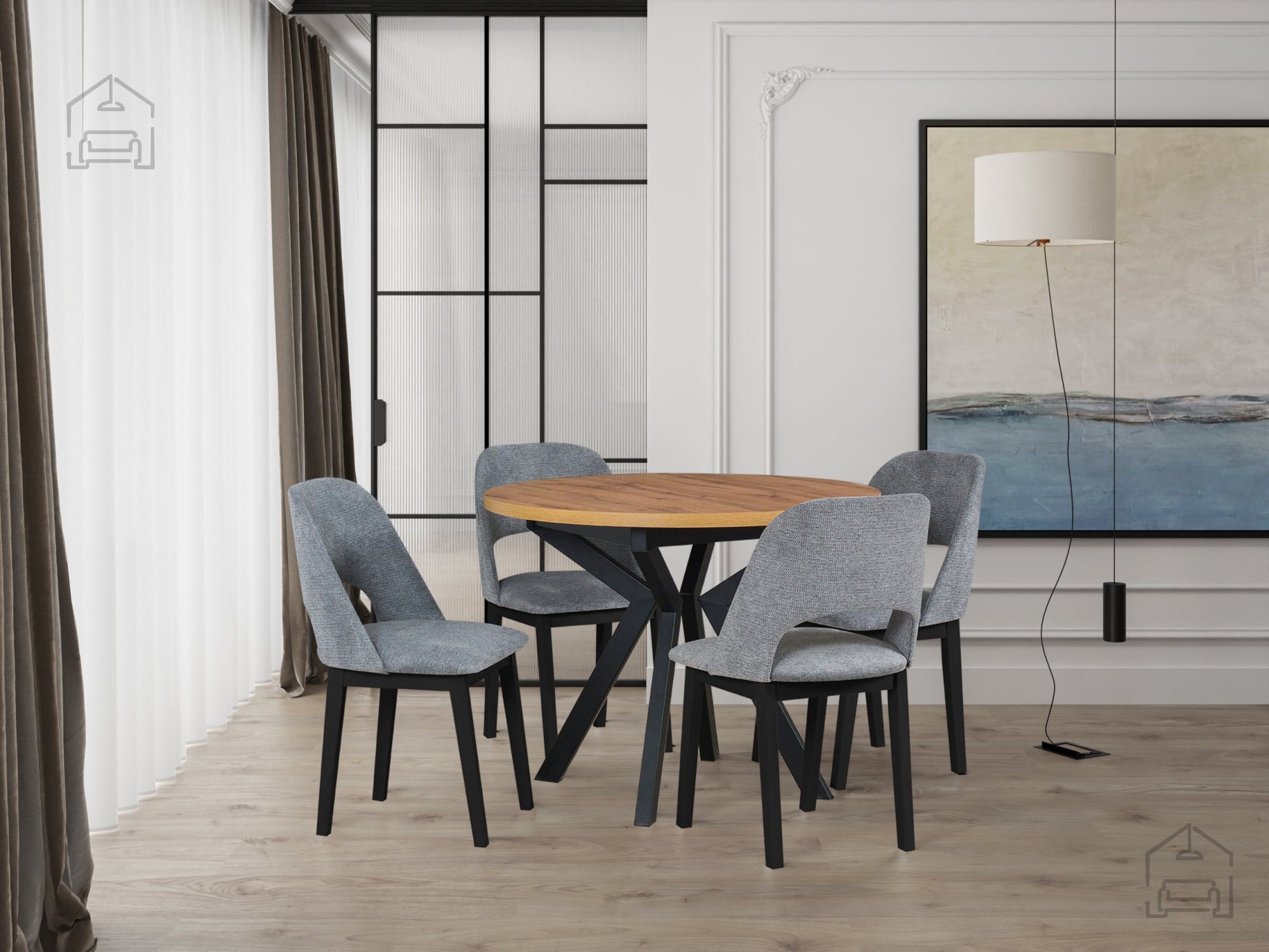 Der Ikon 7 passt sich mühelos unterschiedlichen Einrichtungsstilen an. In industriell gestalteten Räumen unterstreicht er die Ausdruckskraft der Materialien, während er in skandinavischen Interieurs Wärme und Natürlichkeit hineinbringt. Dank seiner kompakten Maße eignet er sich perfekt für kleinere Essbereiche, offene Küchen oder sogar moderne Büroräume. Die Kombination aus Schwarz und Holzton lässt sich leicht mit anderen Möbelstücken wie gepolsterten Stühlen, Vitrinen oder Kommoden aus ähnlichen Materialien kombinieren.