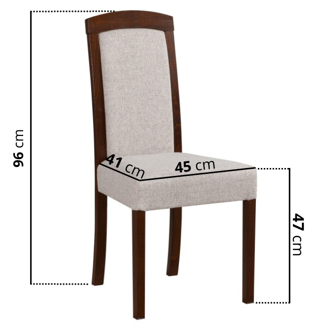 Die Maße – Breite 45 cm, Tiefe 41 cm und Höhe 96 cm – sind perfekt auf ergonomisches Sitzen abgestimmt. Die Sitzhöhe von 48 cm sorgt für eine entspannte Haltung und passt ideal zu den meisten Standard-Esstischen. Die gepolsterte Sitzfläche bietet angenehme Weichheit, bleibt aber fest genug, um Stabilität und Rückhalt zu gewährleisten. Durch den gut durchdachten Neigungswinkel der Rückenlehne bleibt die Wirbelsäule auch bei längerem Sitzen in einer gesunden Position – für spürbar mehr Komfort bei Mahlzeiten oder gemütlichen Abenden.