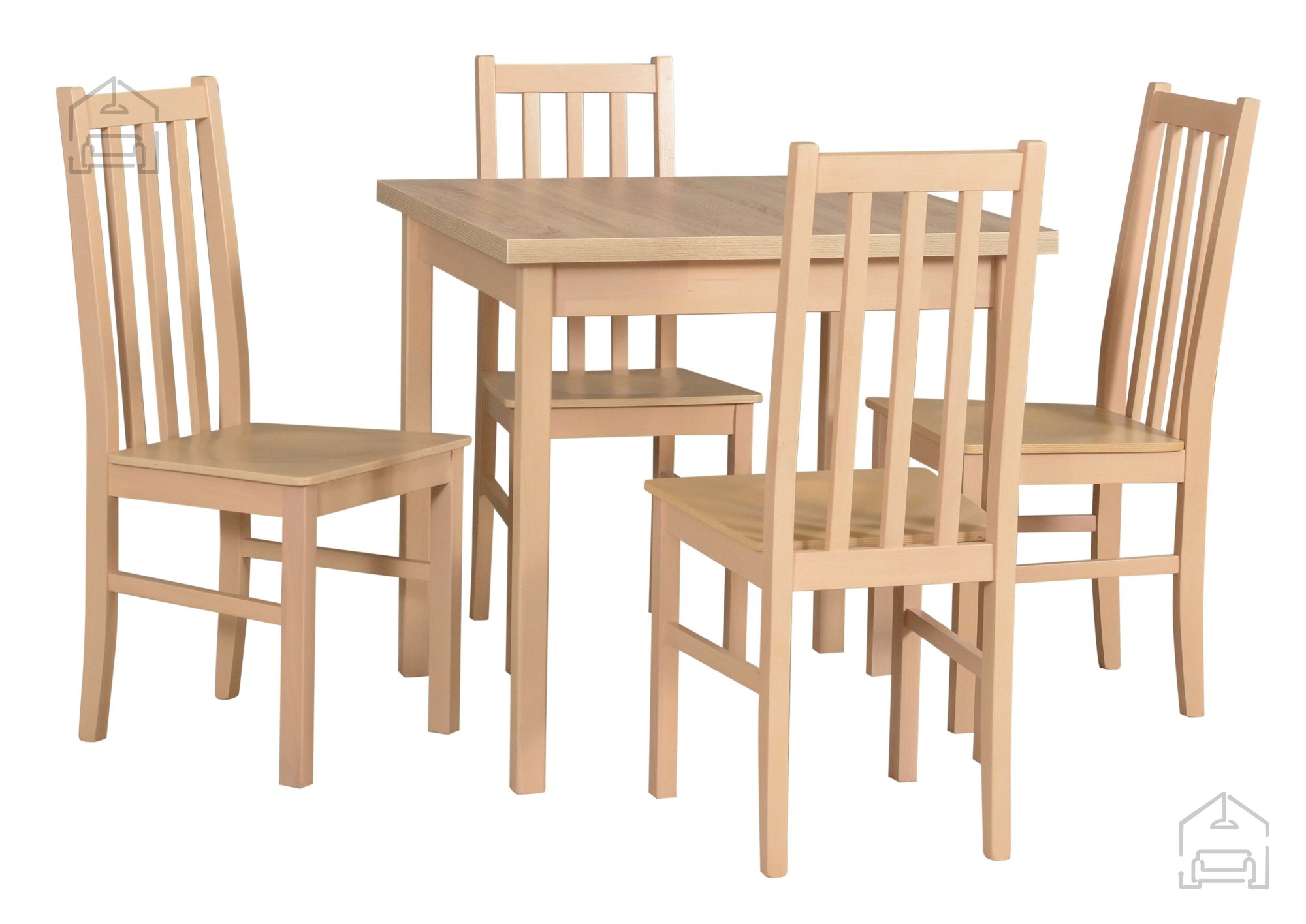 Massives Buchenholz und eine laminierte Platte in der Farbe Eiche Sonoma: Esszimmer-Set Tisch Max 9 Sonoma + 4 Stühle Bos 10 D Sonoma – Drewmix.