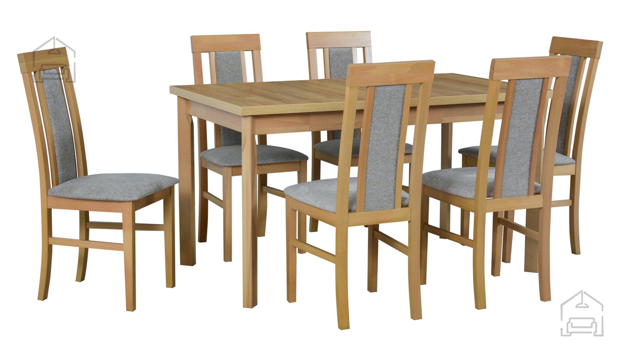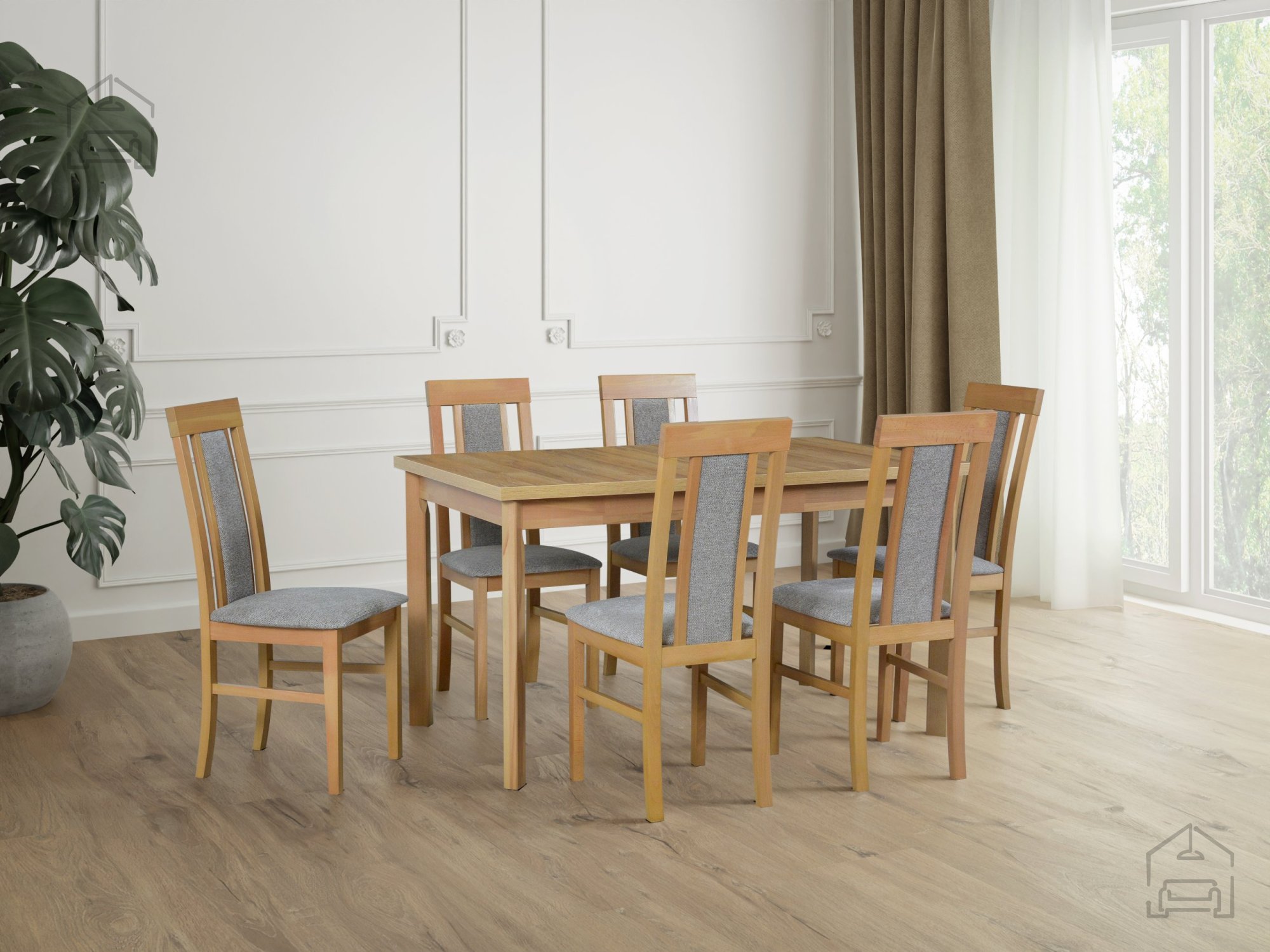 Ausziehbarer Esstisch 140–180 cm aus massivem Buchenholz: Esszimmer-Set Tisch Modena 1P Grandson + 6 Stühle Nilo 2 Grandson 35A – Drewmix.