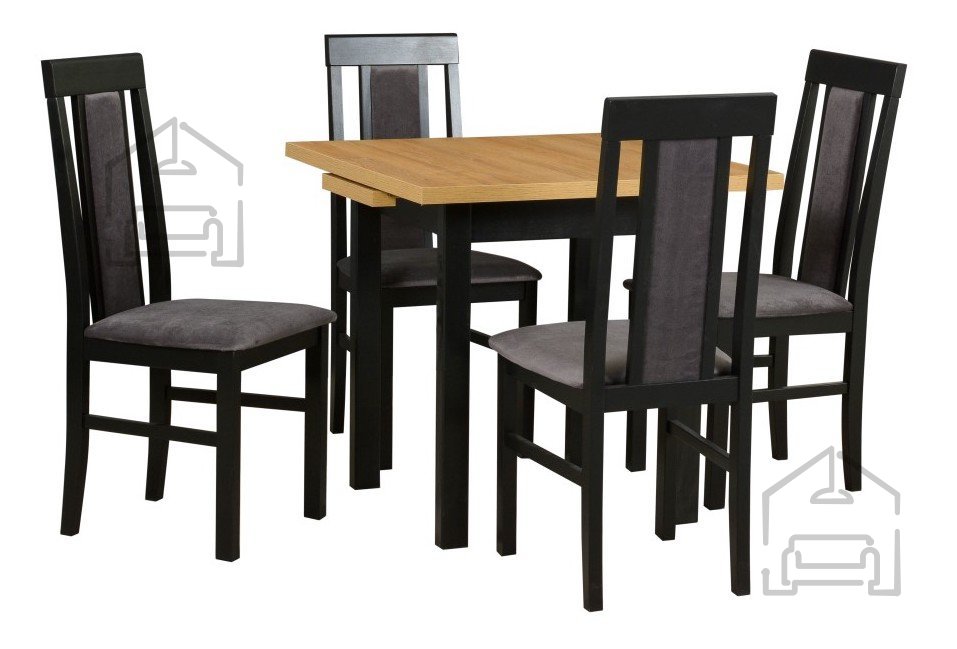 Ausziehbare Tischplatte 80–110 cm aus massiver Buche: Esszimmer-Set Tisch Max 7 schwarz/grandson + 6 Stühle Nilo 2 schwarz 28B – Drewmix.