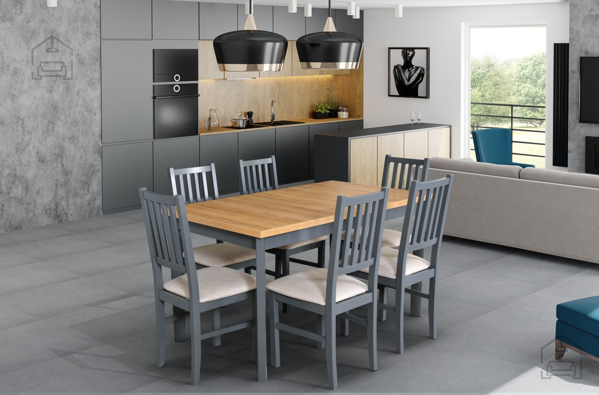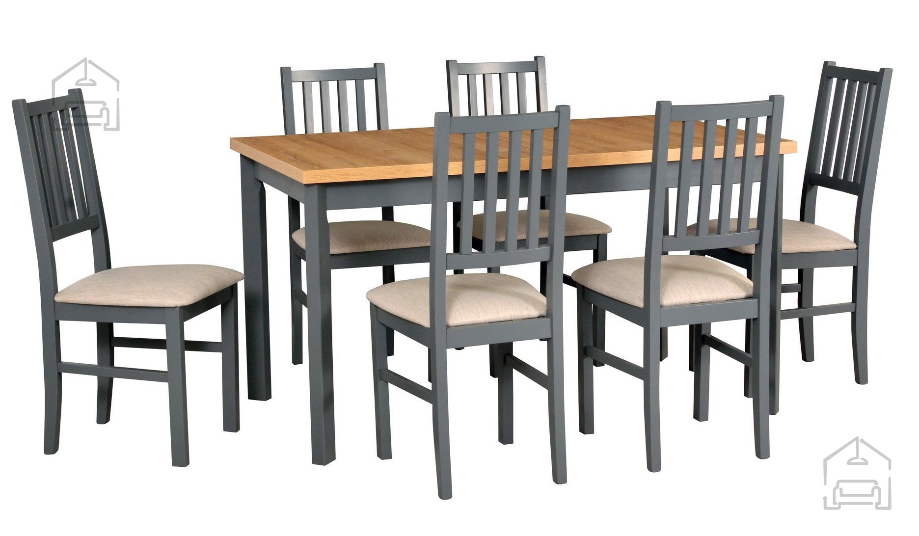 Ausziehbare Tischplatte von 140 bis 180 cm: Esszimmer-Set Tisch Modena 1 P Graphit/Grandson + 6 Stühle Nilo 7 Graphit 3B – Drewmix.