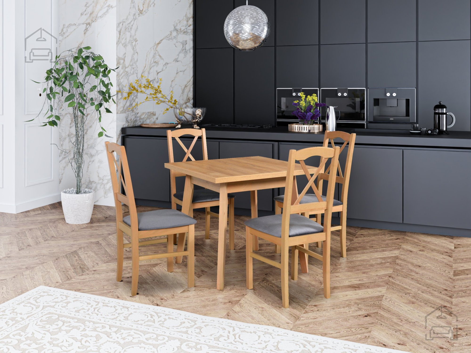Ausziehbarer Tisch 80–110 cm aus massivem Buchenholz: Esszimmer-Set Oslo 1 L Grandson + 4 Stühle Nilo 11 Grandson 28B – Drewmix.