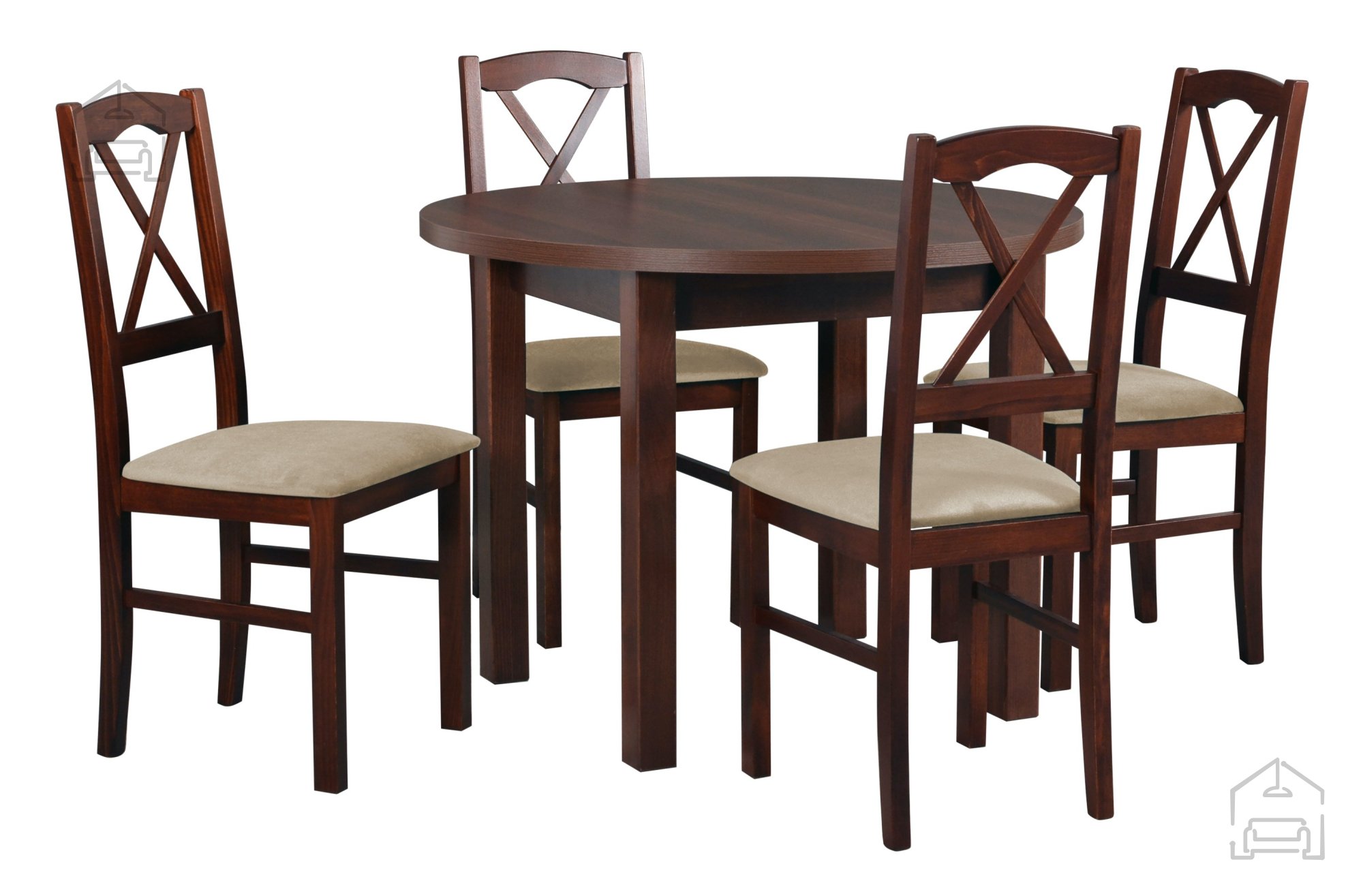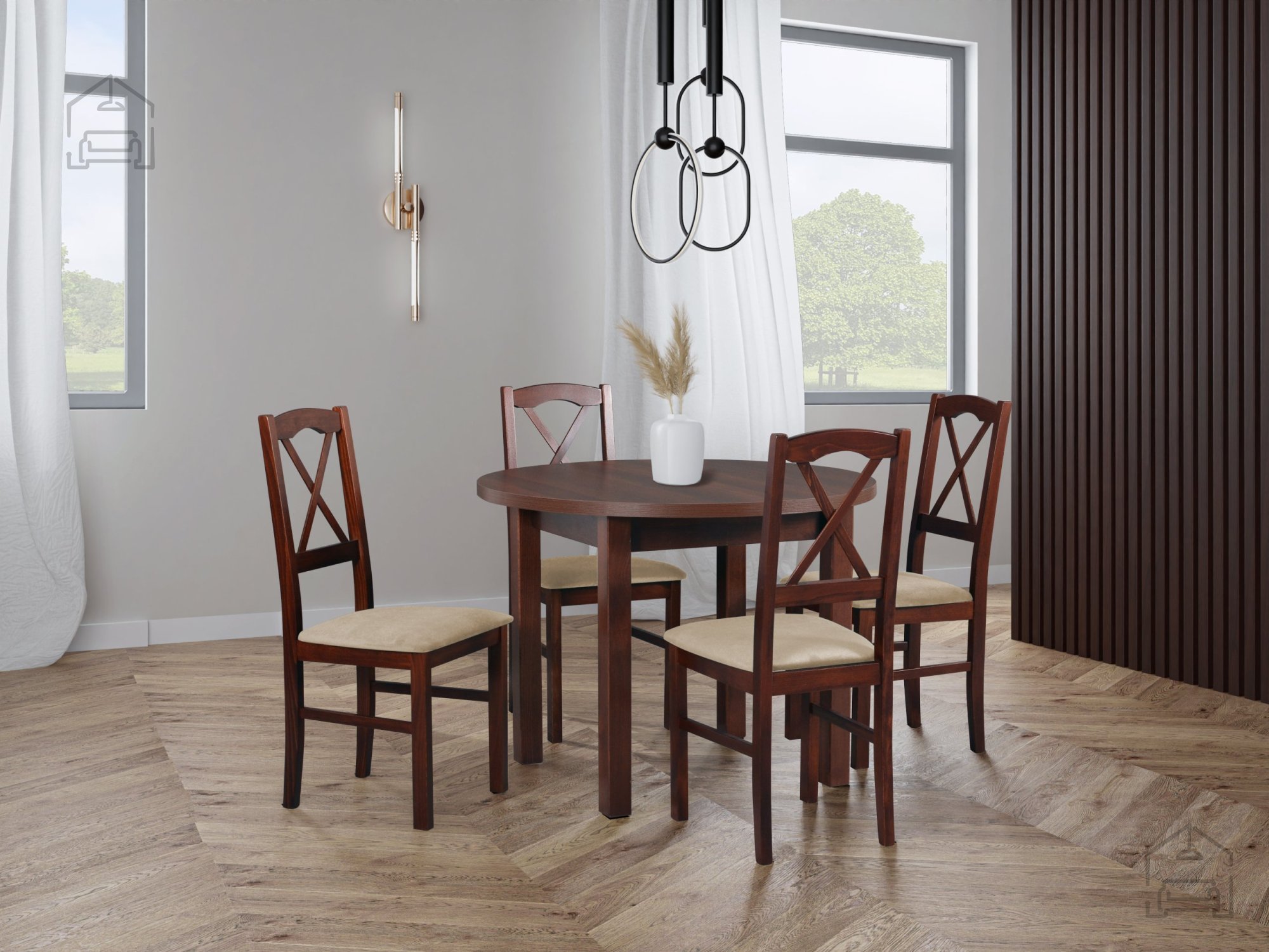 Das Esszimmer-Set Poli 4 mit einem Tisch und vier passenden Stühlen Nilo 11 in der Farbe Nuss 27B ist die ideale Lösung für alle, die eine gemütliche und zugleich stilvolle Essatmosphäre schaffen möchten. Das Produkt des polnischen Herstellers Drewmix vereint hochwertige Verarbeitung, Funktionalität und ansprechendes Design. Massives Buchenholz und eine laminierte Tischplatte sorgen für Langlebigkeit, Stabilität und einfache Pflege, während der warme Nussfarbton dem Raum natürliche Eleganz und Behaglichkeit verleiht.