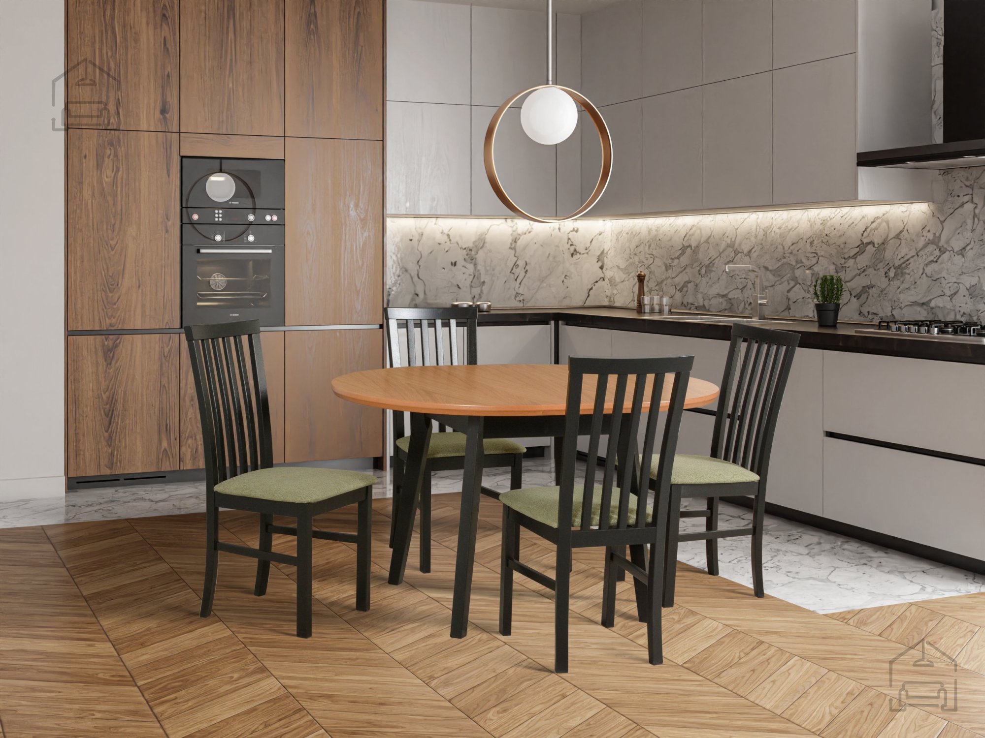 Das Esszimmer ist das Herz des Zuhauses – hier trifft sich die Familie, teilt Mahlzeiten und schafft Erinnerungen. Das Set Oslo 4 + Milano 1 wurde genau dafür entworfen: um Ästhetik, Komfort und Alltagstauglichkeit zu vereinen. Dank der ausziehbaren Konstruktion und der strapazierfähigen Materialien eignet es sich perfekt für den täglichen Gebrauch und überzeugt gleichzeitig mit einem Look, der Ihre Gäste begeistern wird.