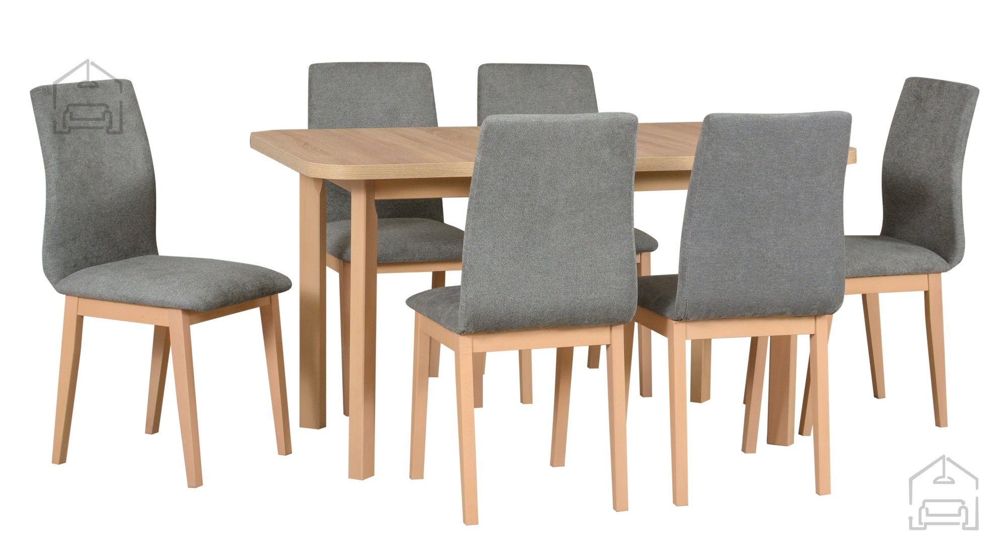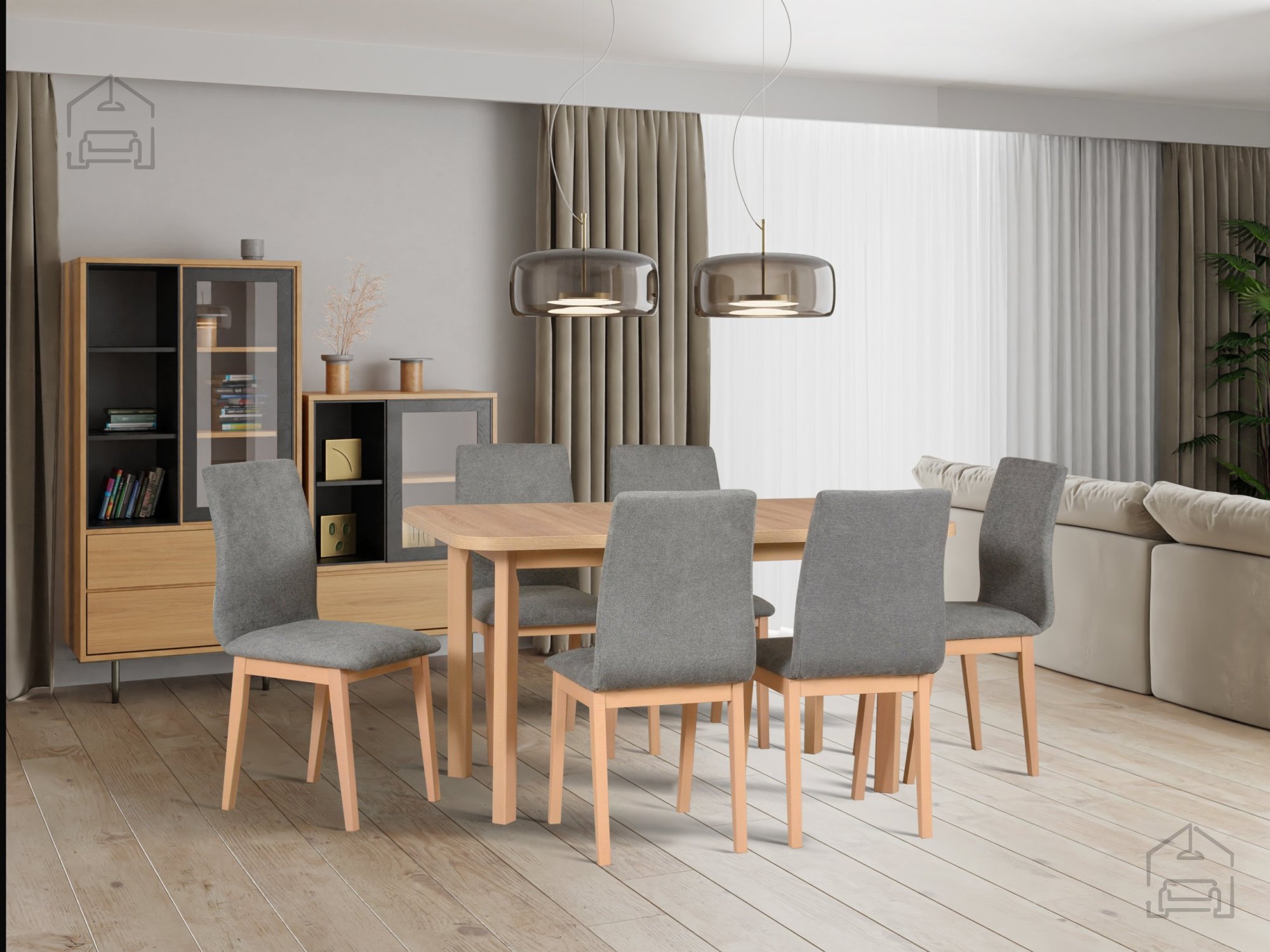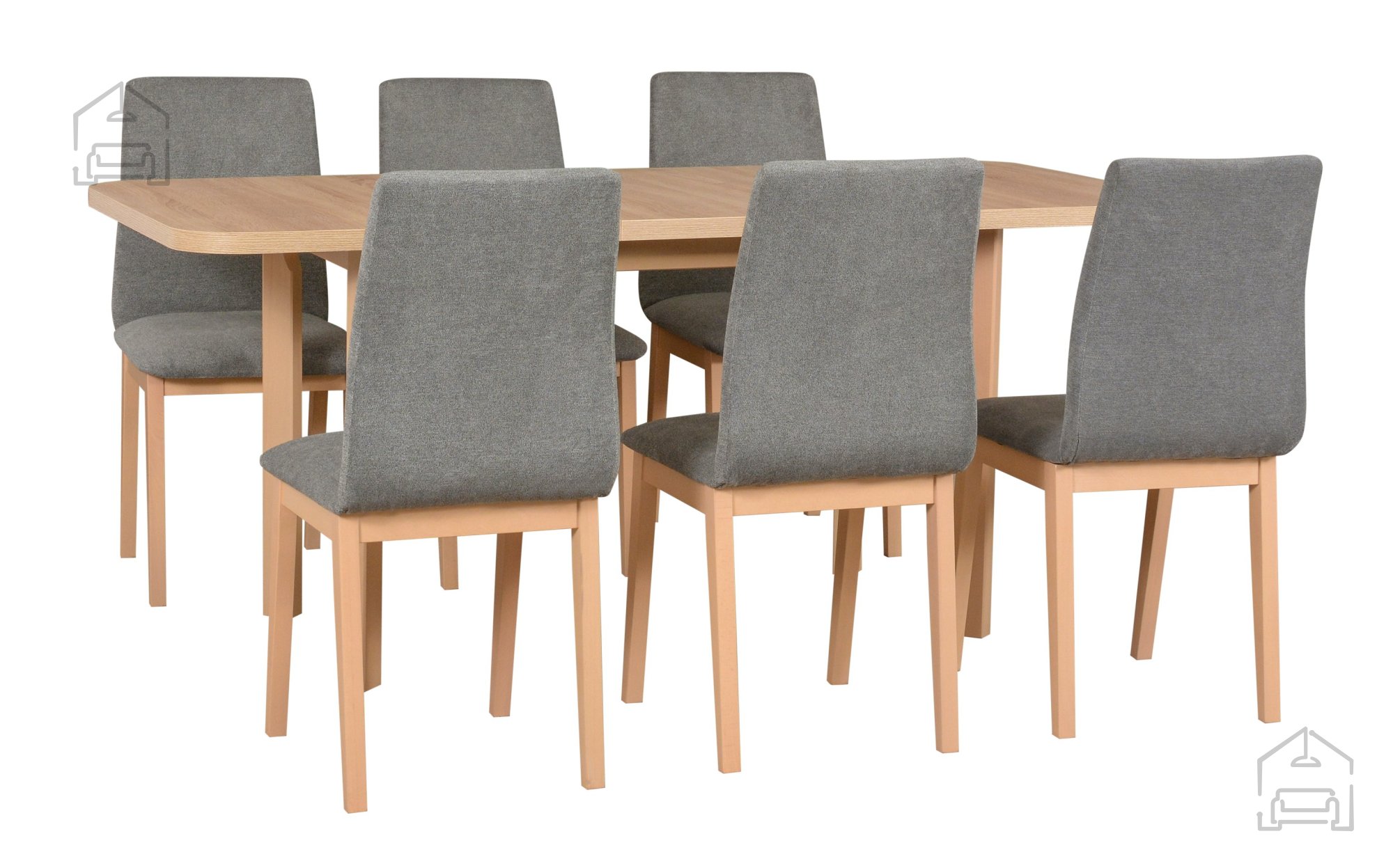Ausziehbarer Tisch 140–180 cm aus massivem Buchenholz: Esszimmer-Set Wenus 2 P Sonoma + 6 Stühle Luna 1 Sonoma 16B – Drewmix.
