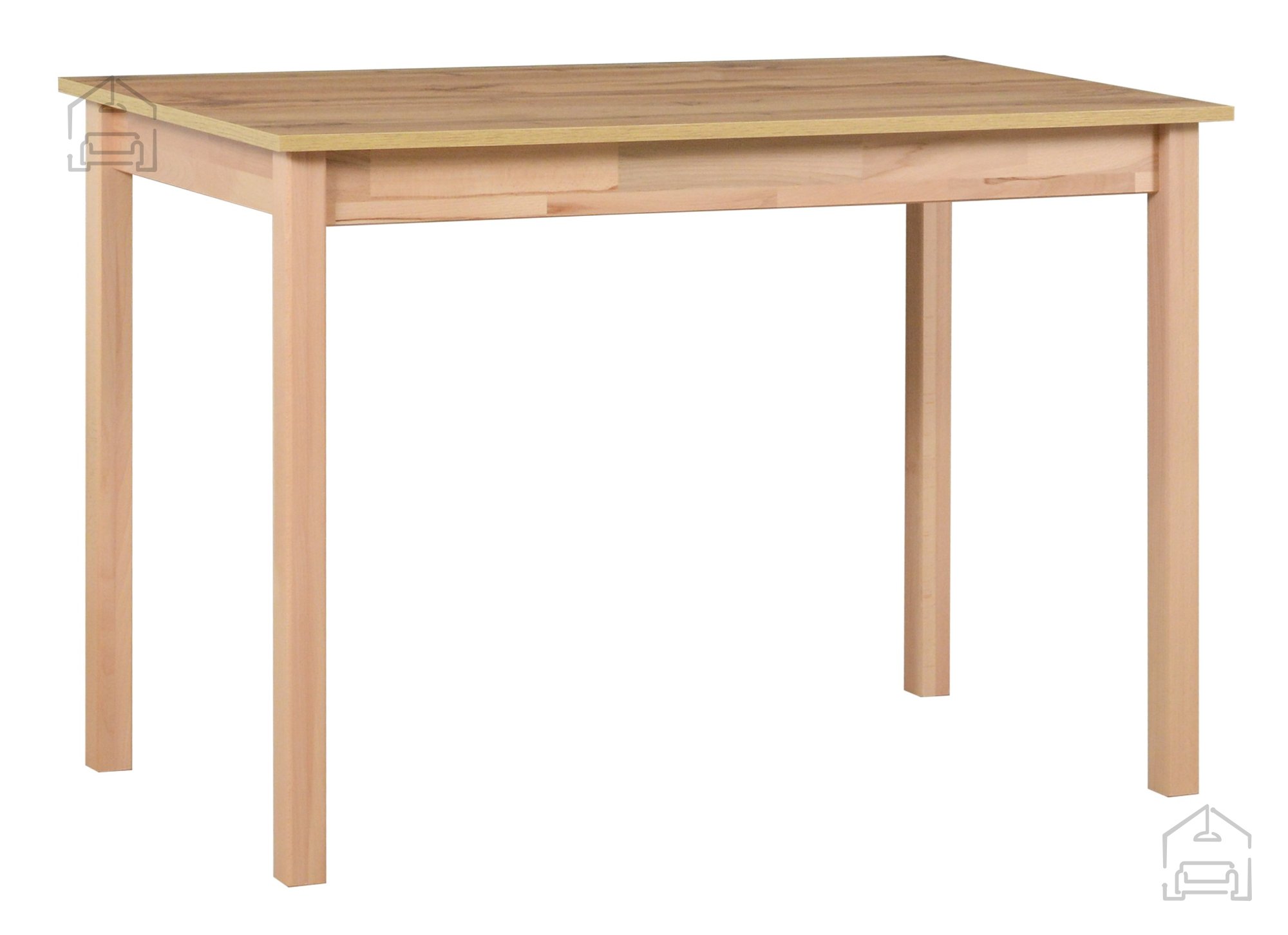 Das Tischgestell besteht aus massivem Buchenholz, was für Stabilität und Widerstandsfähigkeit im Alltag sorgt. Die laminierte Platte mit den Maßen 60 × 110 × 76 cm bietet ausreichend Platz für die täglichen Mahlzeiten und ist zugleich resistent gegen Kratzer und Flecken. Die Laminatoberfläche imitiert die natürliche Holzstruktur, bewahrt die warme Optik und ist gleichzeitig pflegeleichter als eine lackierte Fläche.