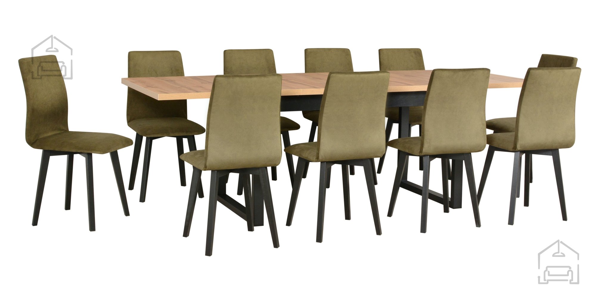 Das Set Ikon 3 L + Luna 2 ist ideal für alle, die Funktionalität und Stil verbinden möchten. Dank der universellen Farbkombination Schwarz/Artisan passt es wunderbar zu verschiedensten Wohnstilen – von skandinavisch über modern bis retro. Die klaren Linien und die schlichte Form des Tisches machen ihn zum Mittelpunkt des Raumes, den Sie mit dekorativen Accessoires nach Ihrem Geschmack ergänzen können. Für noch mehr Komfort lassen sich die Stühle mit weichen Kissen ausstatten – oder Sie belassen sie in ihrer schlichten Eleganz.