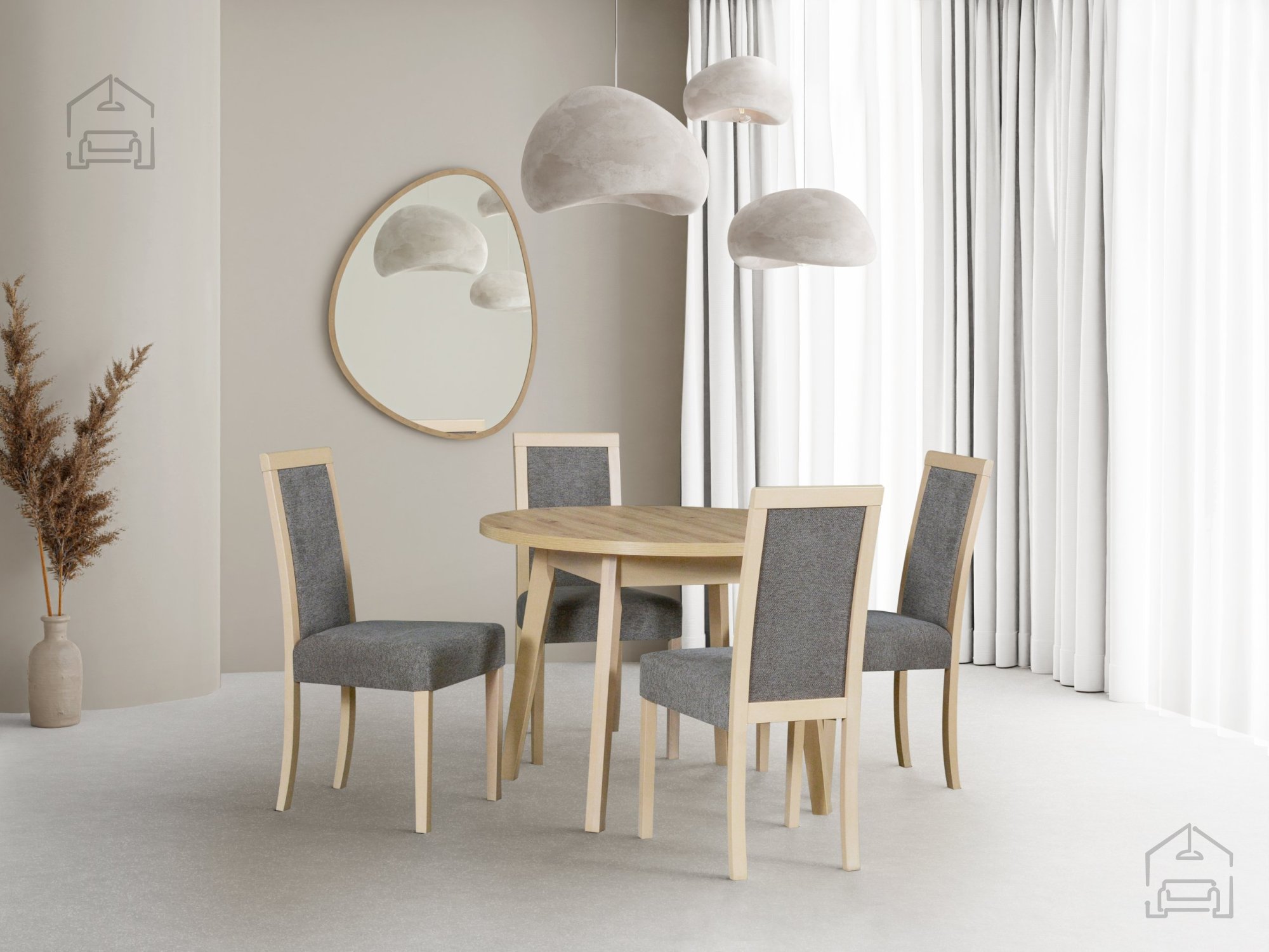 Ausziehbarer Tisch 100–130 cm mit laminierter Tischplatte: Esszimmer-Set Oslo 3 L sonoma/artisan + 4 Stühle Roma 3 sonoma 34B – Drewmix.