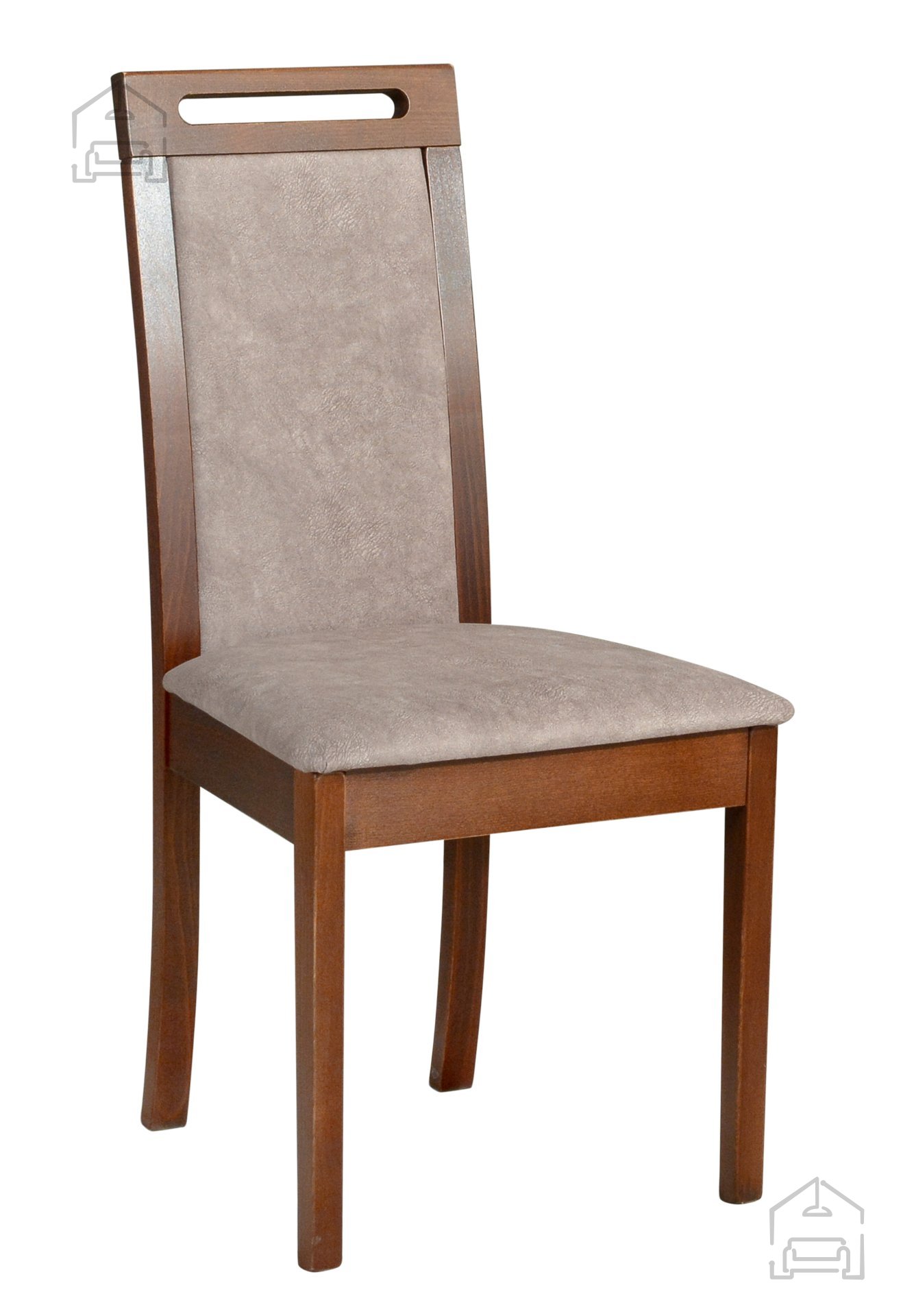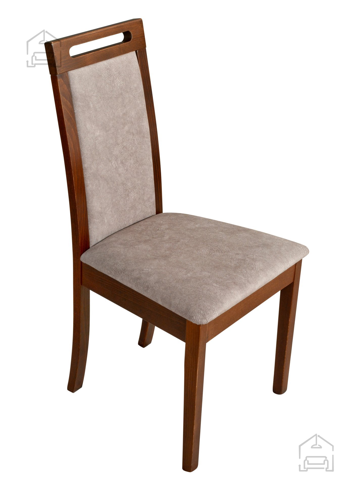Sechs geschmackvolle Roma 6 Stühle runden das Set harmonisch ab. Sie bestehen aus massivem Buchenholz im warmen Nussbaumton 25B, der perfekt mit der Tischplatte harmoniert. Die mit Stoff Dora 22 gepolsterte Sitzfläche sorgt für angenehmen Komfort, auch bei längerem Sitzen, und zeichnet sich durch hohe Strapazierfähigkeit aus. Die Maße von 41 × 47 × 96 cm bieten eine gute Rückenstütze und Stabilität – für entspanntes Sitzen bei jedem Essen.