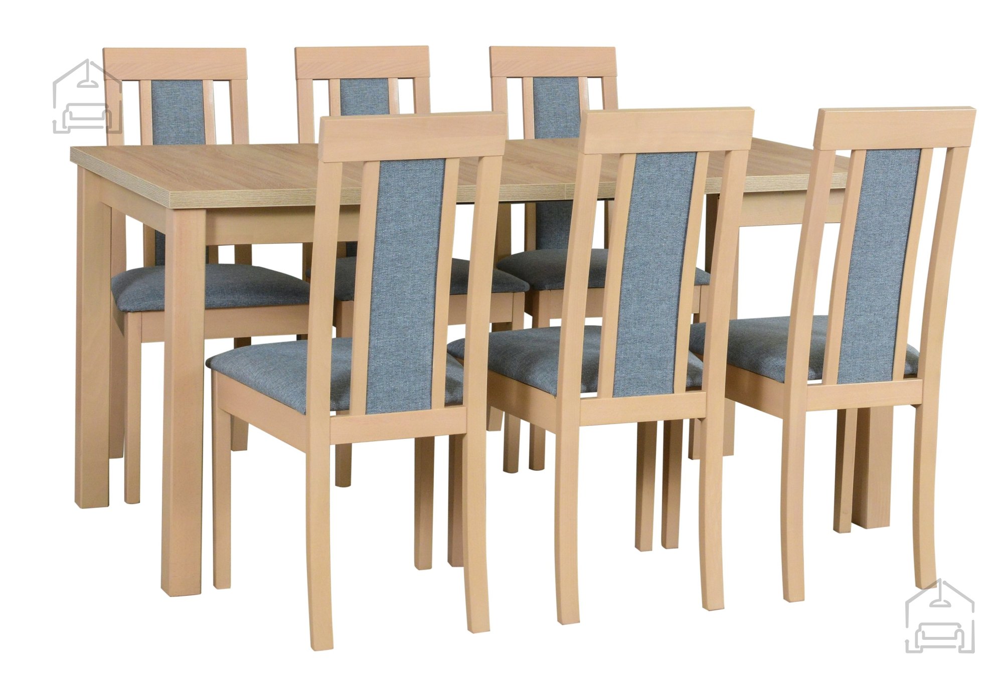 Ausziehbarer Esstisch 80–160 cm aus massivem Buchenholz: Esszimmer-Set Max 8 Sonoma + 6 Stühle Roma 11 Sonoma 7B Hygge 91 – Drewmix.