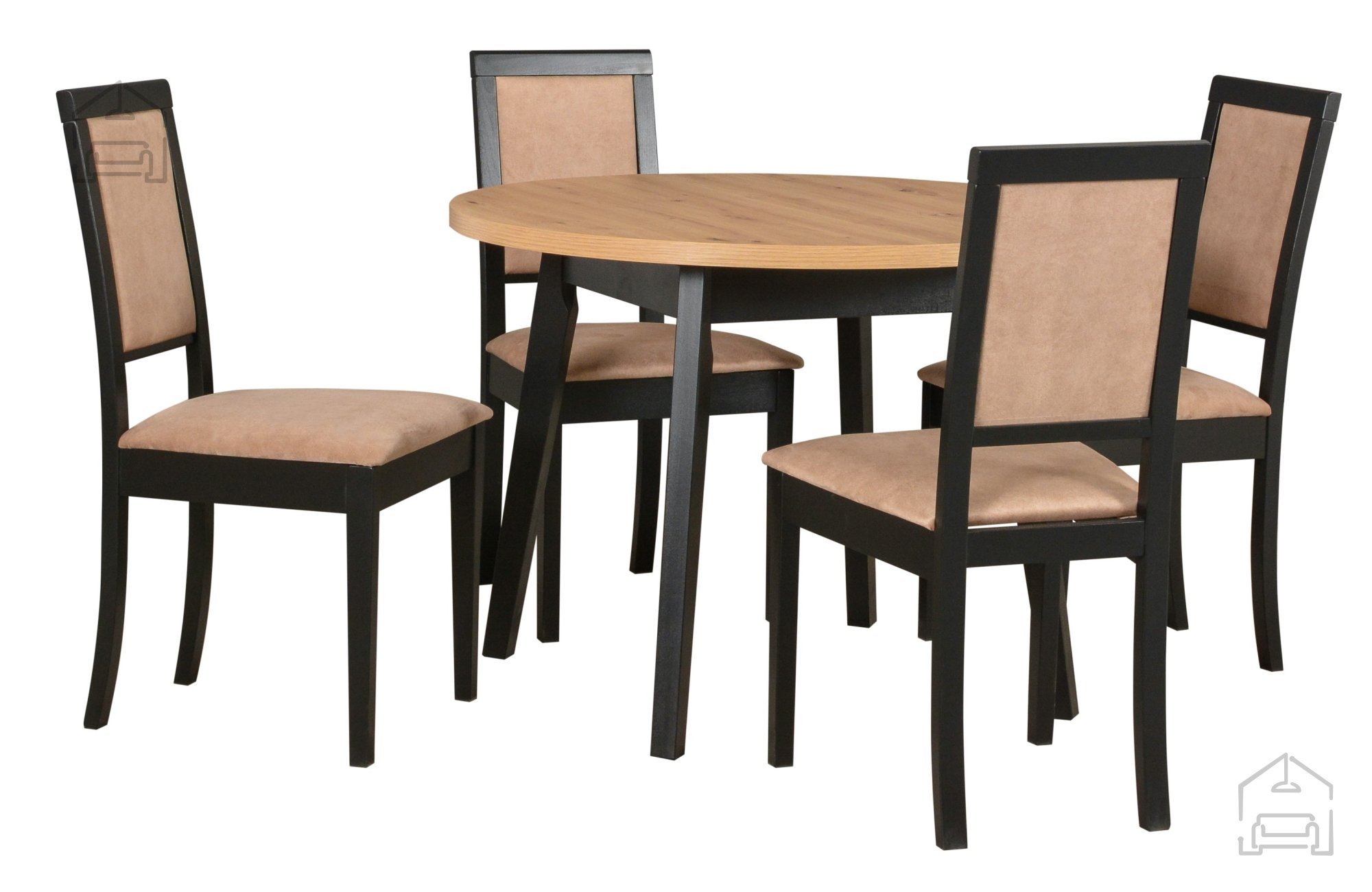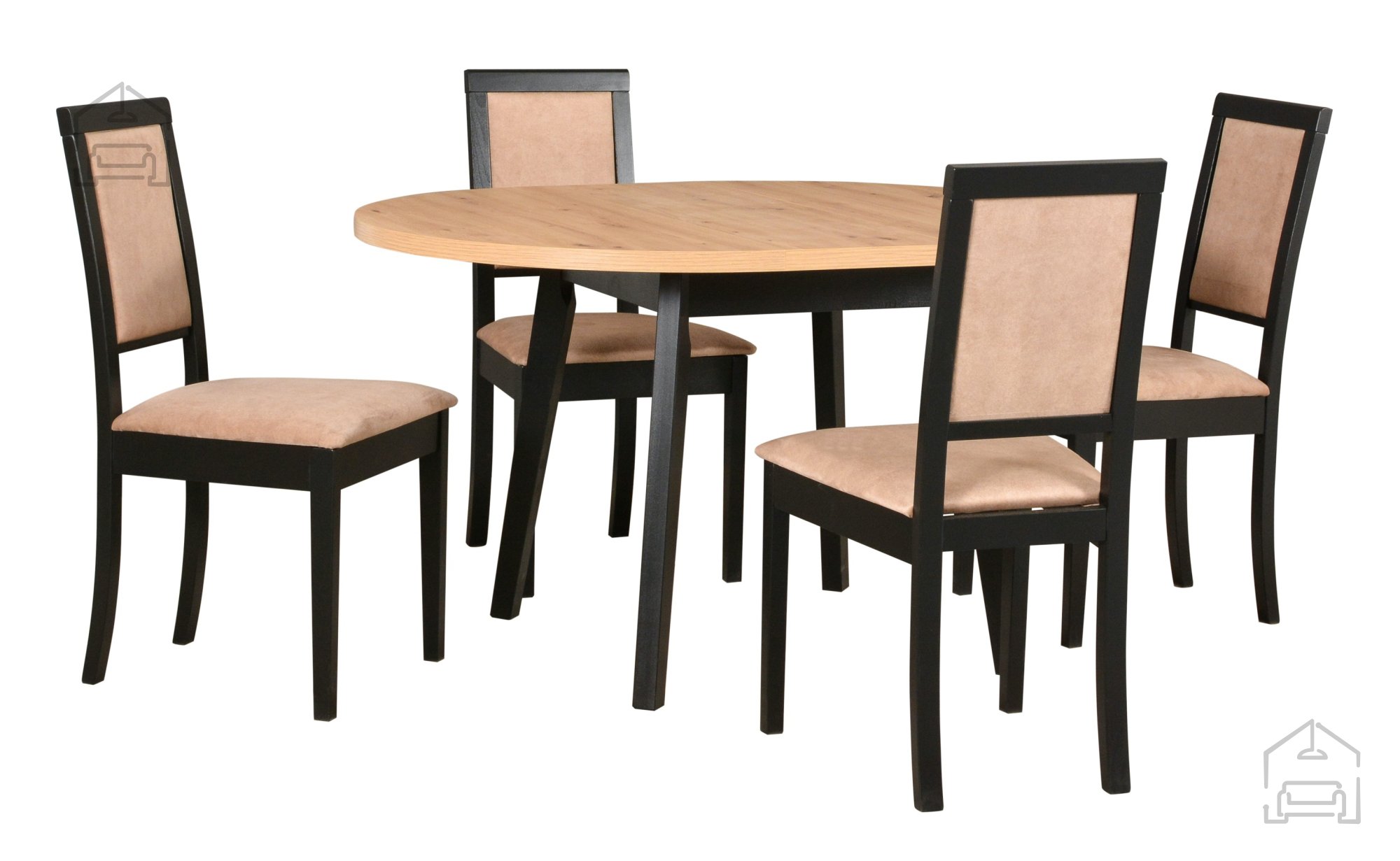 Massives Buchenholz und ausziehbarer Mechanismus 100–130 cm: Esszimmer-Set Oslo 3L + 6 Stühle Roma 13 – Drewmix.