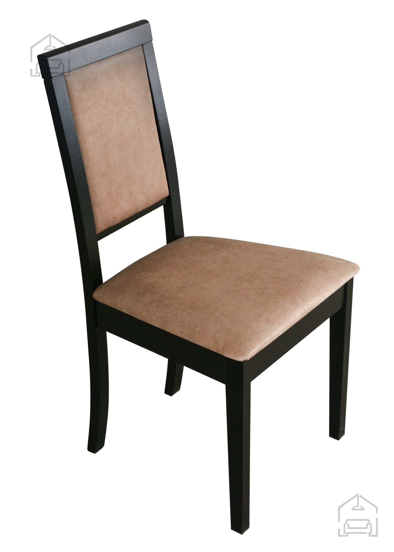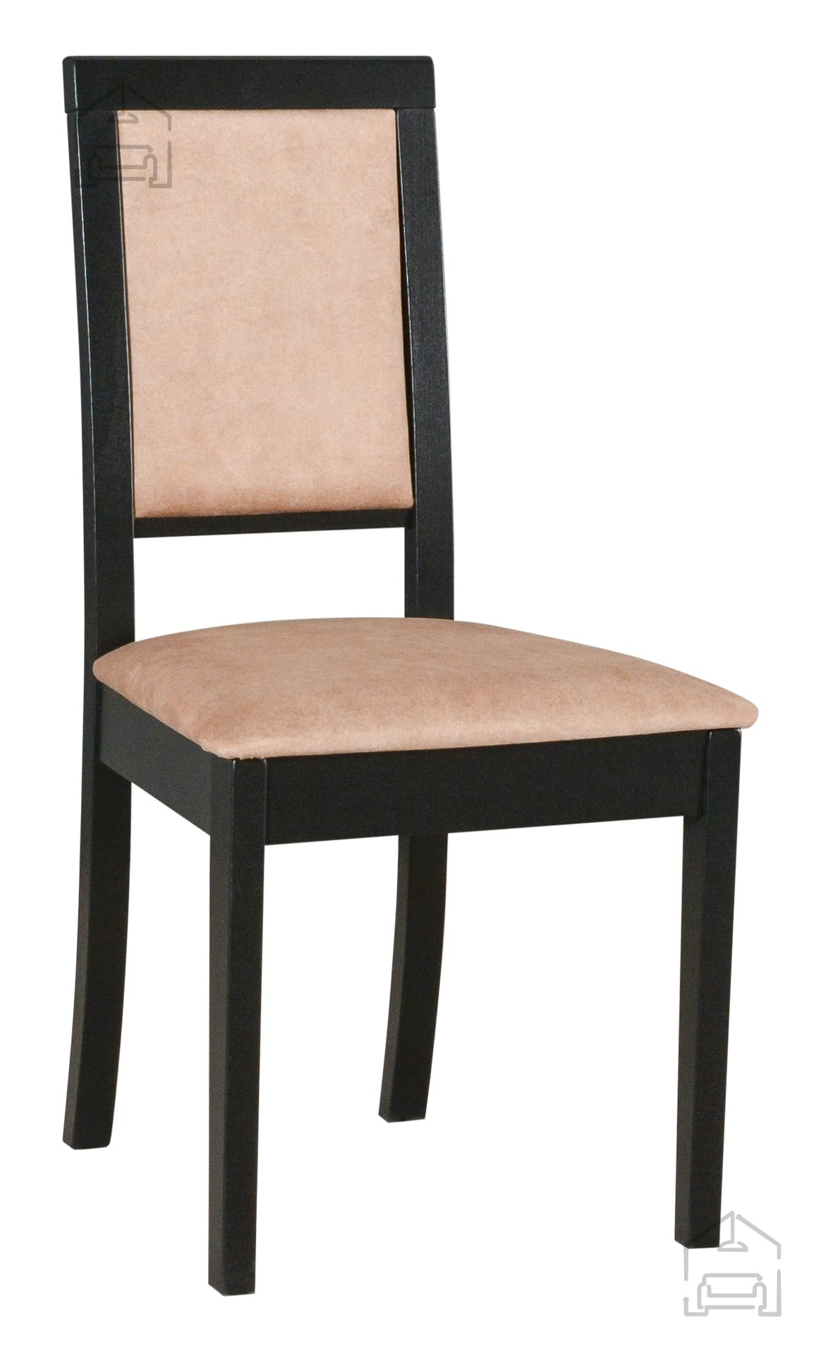 Zum Set gehören sechs elegante Stühle Roma 13 in der Farbe Schwarz 21B. Jeder Stuhl misst 43 × 47 × 93 cm und bietet damit eine angenehme Sitzhöhe und guten Komfort. Sitzfläche und Rückenlehne sind weich, aber strapazierfähig gepolstert – der Stoff fühlt sich angenehm an und ist abriebfest. Die leicht gebogene Rückenlehne unterstützt den Rücken optimal, sodass man auch bei längeren Mahlzeiten oder Gesprächen bequem sitzt. Das stabile Gestell aus Buchenholz sorgt für sicheren Stand und verleiht dem Stuhl einen klassischen Look, der perfekt zum Tisch passt.