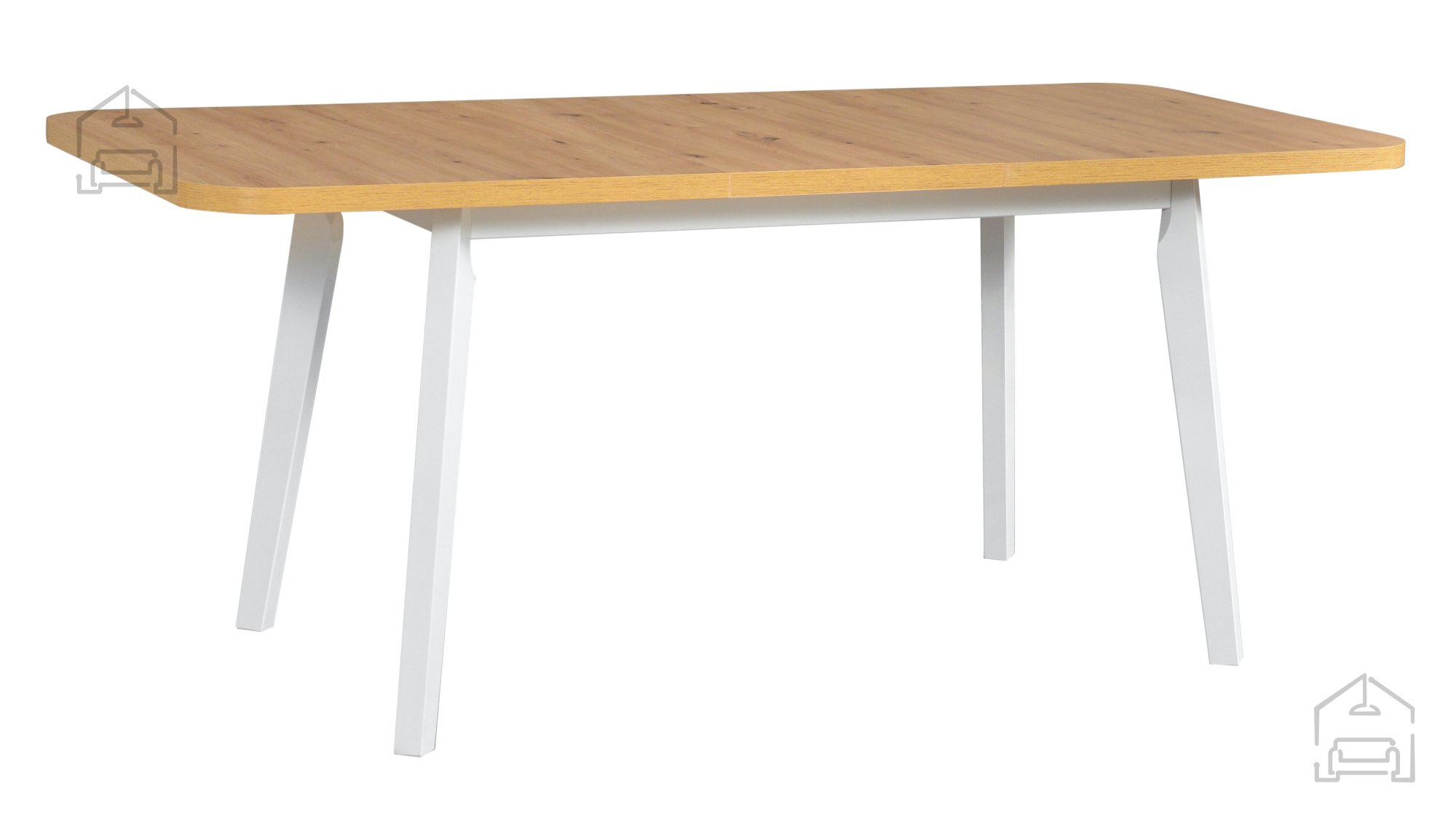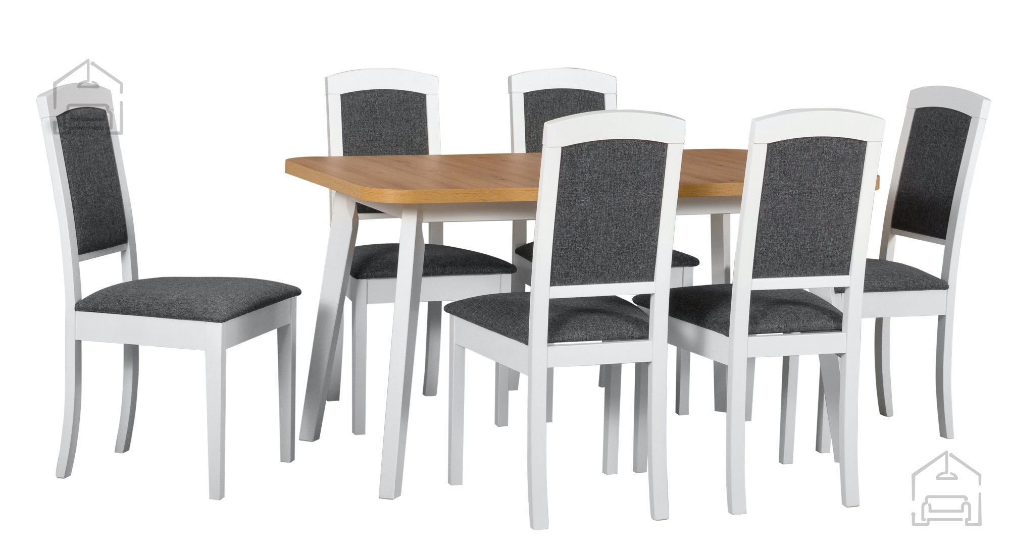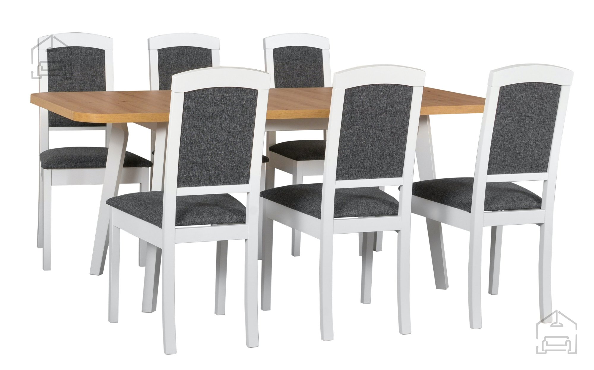 Ausziehbarer Esstisch 80×140–180×75 cm aus massivem Buchenholz: Esszimmer-Set Oslo 6 Weiß/Artisan + 6 Stühle Roma 14 Weiß 8B – Drewmix.