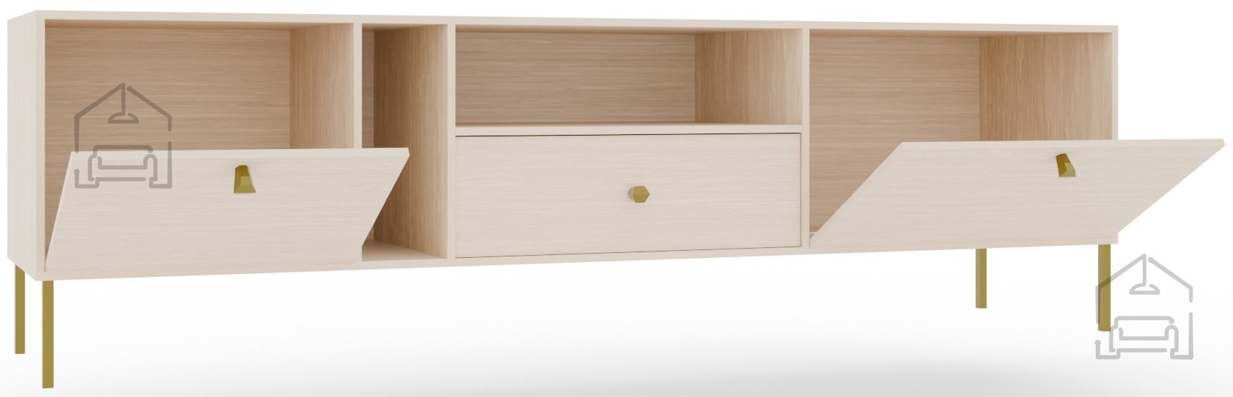 In einem modernen Zuhause, wo sich Ästhetik und Funktionalität harmonisch verbinden, ist eine hochwertige TV-Kommode ein unverzichtbares Möbelstück. Das Modell in sandbeiger Farbe schafft ein ausgewogenes Zusammenspiel von natürlichen, warmen Tönen und eleganter Schlichtheit – passend sowohl für minimalistische als auch für klassische Wohnstile. Mit ihrem durchdachten Design und den klaren Linien wird sie zum Mittelpunkt des Wohnzimmers und bietet zugleich eine praktische Lösung für die Aufbewahrung und Organisation Ihrer Multimedia-Geräte.