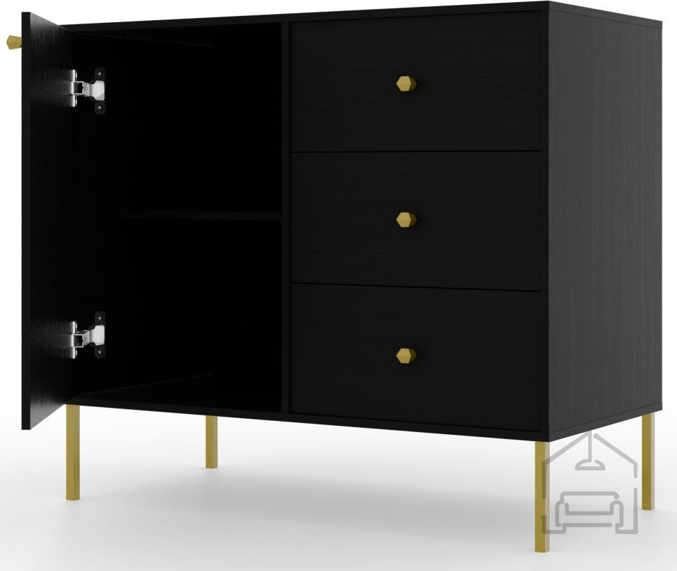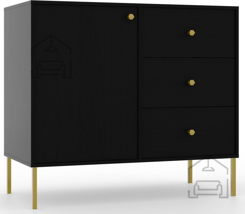 Eleganz, Funktionalität und moderner Stil vereinen sich in einem einzigartigen Möbelstück, das Ihrem Zuhause einen Hauch von Luxus und Raffinesse verleiht. Die Kommode Tili 1D3S in Schwarz ist die perfekte Wahl für alle, die minimalistisches Design, hochwertige Materialien und eine durchdachte Raumaufteilung schätzen. Hergestellt aus einer robusten, 16 mm starken laminierten Platte, überzeugt sie durch Langlebigkeit und einfache Pflege und sorgt zugleich mit ihrem Erscheinungsbild für ein Gefühl von Ordnung und stilvoller Eleganz in jedem Raum.