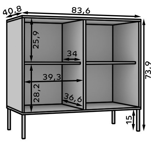 Die Kommode Tili 2D sieht nicht nur gut aus, sie ist auch äußerst praktisch. Hinter den beiden Türen verbirgt sich großzügiger Stauraum, der Platz für Kleidung, Bücher, Unterlagen, Geschirr oder Dekoartikel bietet. Durch die kompakte Höhe eignet sich die obere Fläche ideal zum Platzieren von Dekoobjekten, Blumentöpfen, Lampen oder persönlichen Erinnerungsstücken. So wird die Kommode nicht nur zu einem nützlichen Möbelstück, sondern auch zu einer Bühne für Ihren individuellen Stil.