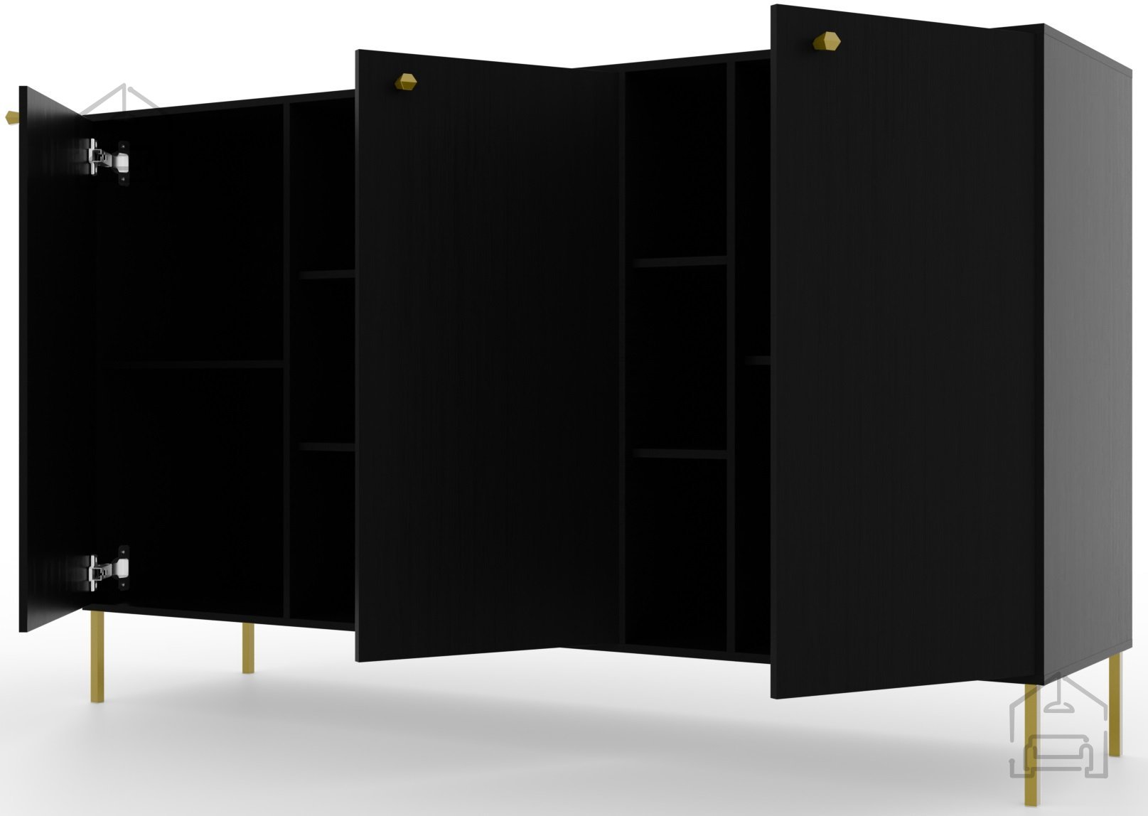 Die schwarze Kommode Tili 3D6P ist ein perfektes Beispiel dafür, wie Funktionalität und Ästhetik in einem Möbelstück harmonisch zusammenfinden. Mit ihren Maßen von 155,7 x 40,8 x 95 cm bietet sie das ideale Verhältnis zwischen Stauraum und Kompaktheit und passt somit sowohl in größere als auch in kleinere Räume. Gefertigt aus einer hochwertigen 16 mm laminierten Platte, überzeugt sie durch Stabilität, Langlebigkeit und einfache Pflege. Ihr modernes Design in elegantem Schwarz verleiht jedem Raum einen Hauch von Luxus und zeitloser Raffinesse.