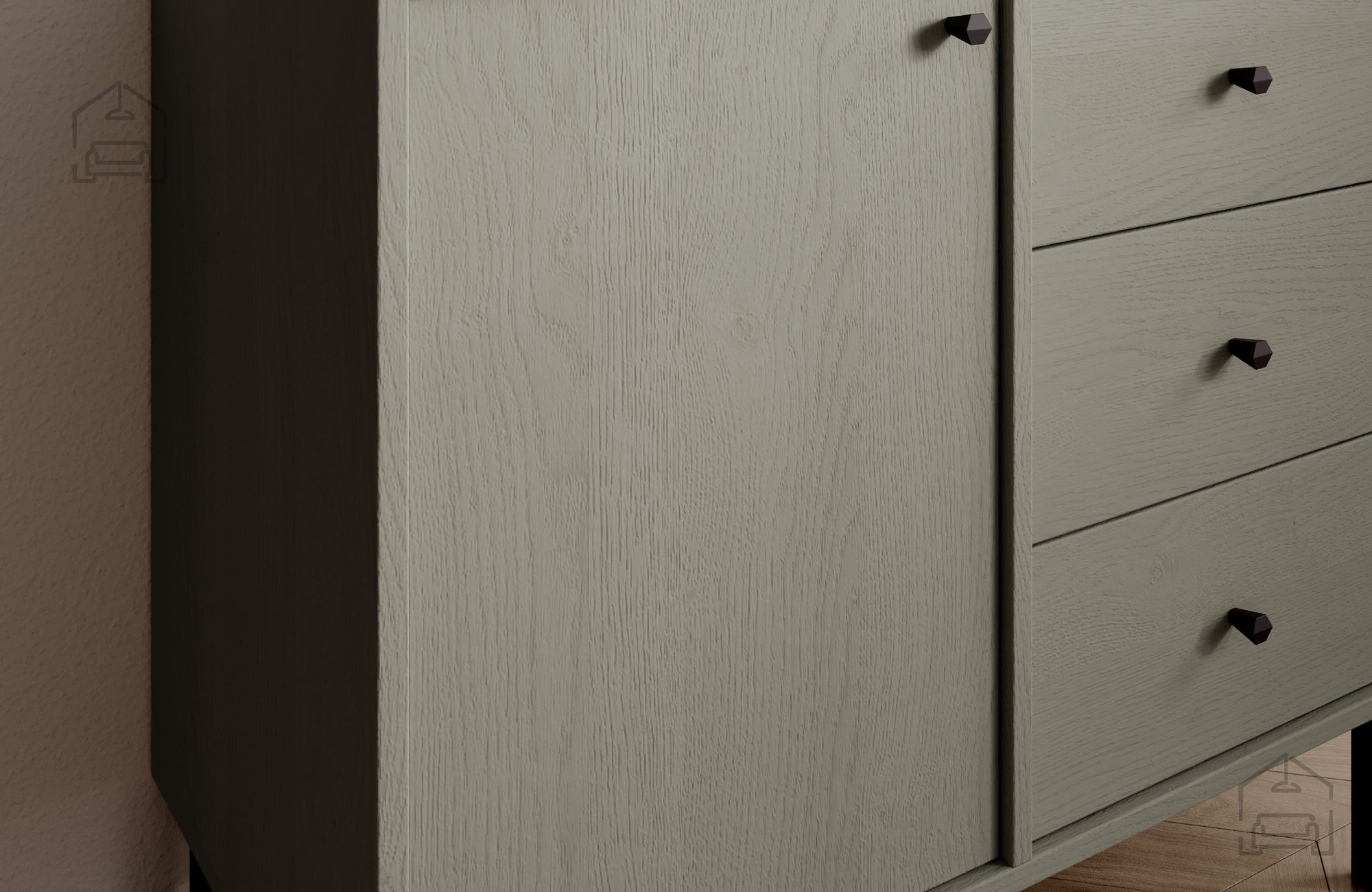 Bringt natürliche Eleganz und zeitlose Funktionalität in Ihr Zuhause. Diese moderne Kommode in Eukalyptusfarbe verbindet ansprechendes Design mit praktischer Nutzbarkeit – ideal für jedes Zimmer, ob Wohnzimmer, Schlafzimmer oder Vorraum. Gefertigt aus einer hochwertigen, 16 mm starken laminierten Platte, überzeugt sie durch Langlebigkeit und Stabilität, während ihr stilvolles Erscheinungsbild harmonisch zu unterschiedlichsten Einrichtungsstilen passt.