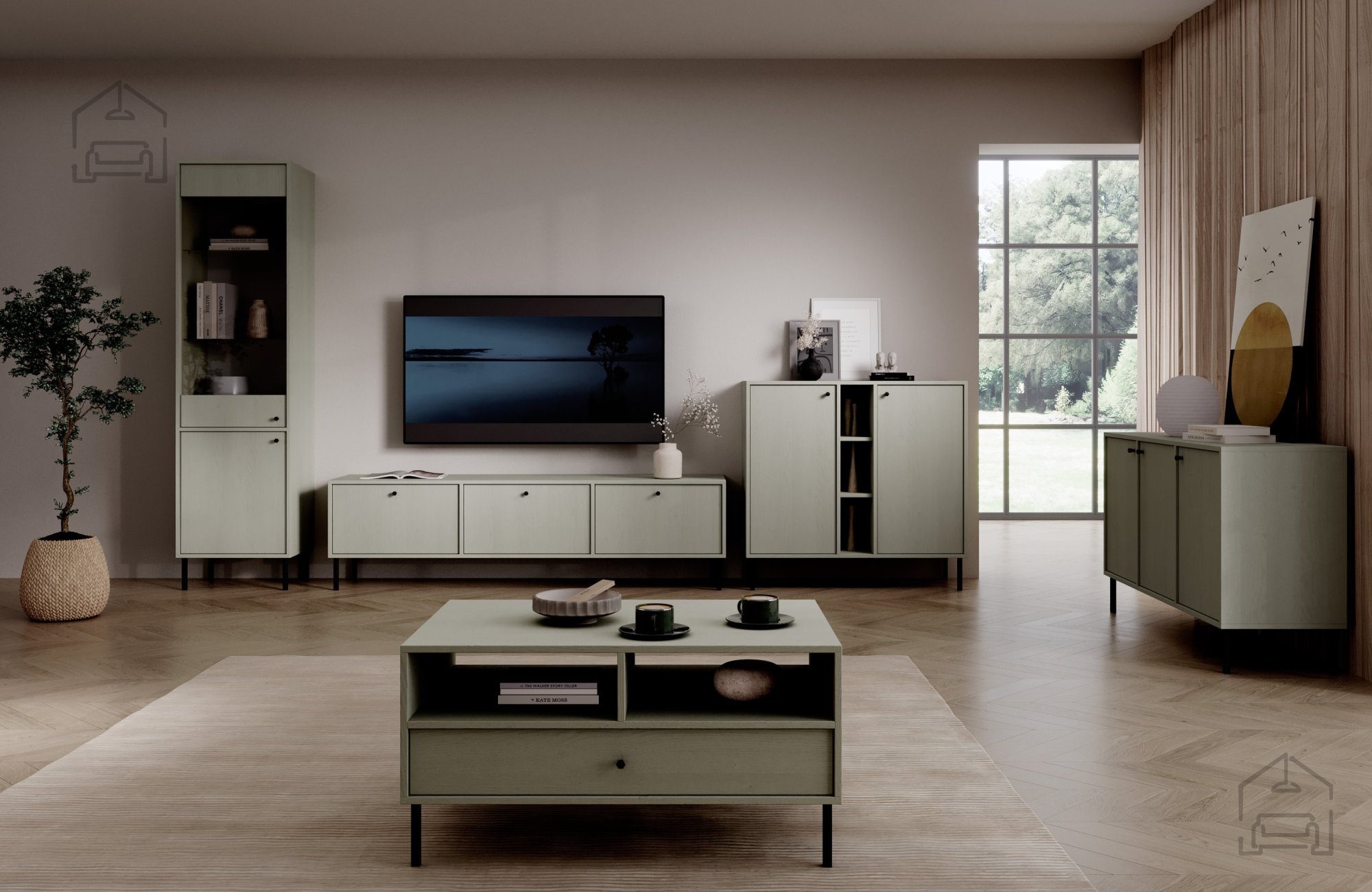 Der Farbton Eukalyptus verleiht dem Raum Ruhe und natürliche Frische. Diese von der Natur inspirierte Farbe harmoniert wunderbar mit unterschiedlichsten Einrichtungsstilen – vom modernen skandinavischen Minimalismus bis hin zu warmen klassischen Interieurs. Die Oberfläche aus 16 mm starker, laminierter Platte ist nicht nur optisch ansprechend, sondern auch widerstandsfähig gegen Kratzer, Feuchtigkeit und den täglichen Gebrauch – für eine lange Lebensdauer des Möbelstücks.