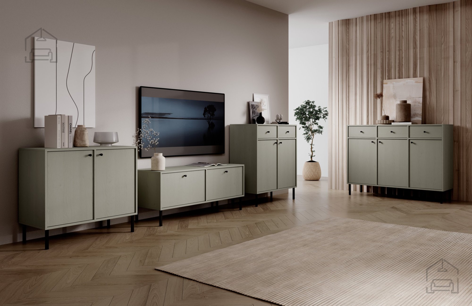 Wenn Sie ein Möbelstück suchen, das modernes Design, durchdachte Funktionalität und die Wärme natürlicher Farbtöne vereint, ist diese Kommode die perfekte Wahl für Ihr Zuhause. Ihre elegante Form, inspiriert von natürlichen Strukturen und Farben, fügt sich mühelos in jeden Einrichtungsstil ein – von modern-minimalistisch bis klassisch-elegant. Mit ihrem Eukalyptusfarbton bringt die Kommode Frische, Ruhe und ein Gefühl von Balance in den Raum – genau das, was viele heute in ihrem Zuhause suchen.