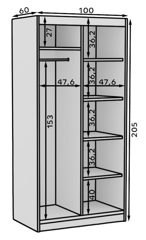 Wenn Sie in Ihrem Zuhause Ordnung, Stil und Funktionalität vereinen möchten, ist dieser Kleiderschrank genau richtig. Sie müssen keine Zeit mehr mit Suchen verbringen – alles hat seinen Platz. Zudem wird der Schrank mit seinem modernen Design zu einem echten Blickfang im Raum.