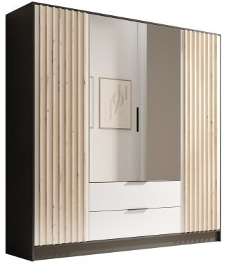 Ein aufgeräumter und übersichtlicher Kleiderschrank trägt zu Ihrem Wohlbefinden bei, spart Zeit und reduziert Stress bei der Kleiderwahl. Mit dem Kauf des Kleiderschranks Neri erhalten Sie nicht nur praktischen Stauraum, sondern auch ein stilvolles Möbelstück, das Ihr Zuhause bereichert. Die Farbkombination Schwarz-Weiß verleiht Eleganz, während der Spiegel zusätzliche Funktionalität bietet.