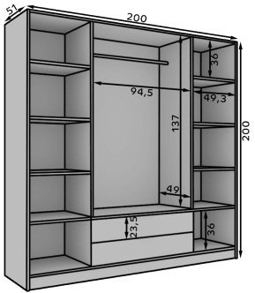 Durch die gut durchdachte Innenaufteilung finden all Ihre Kleidungsstücke, Schuhe und Accessoires ihren Platz. Die Variante mit einer Länge von 200 cm bietet ausreichend Stauraum, damit alles übersichtlich bleibt und Sie immer den Überblick behalten.