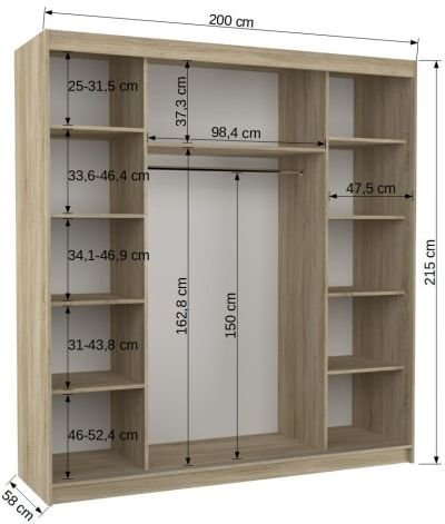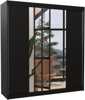 Die Spiegelfronten des Schranks verleihen ihm nicht nur ein ansprechendes Aussehen, sondern lassen den Raum auch größer wirken. Eine ideale Lösung für kleinere Zimmer oder schmale Flure, wo jeder Quadratmeter zählt. Dank der Schiebetüren benötigen Sie keinen zusätzlichen Platz zum Öffnen, wodurch sich der Schrank flexibel in jeden Raum integrieren lässt.