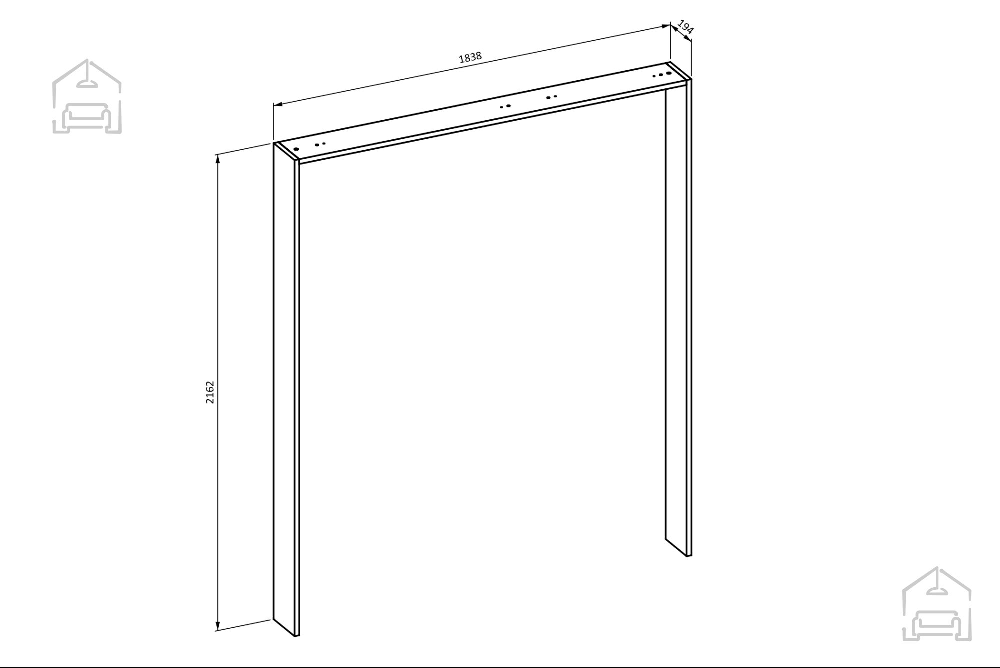 Die Maße des Rahmens betragen Breite 184 cm, Tiefe 19 cm und Höhe 216 cm. Diese Proportionen sorgen für eine optimale Raumausnutzung und eine einfache Integration in die meisten modernen Schranksysteme. Das Design ist darauf abgestimmt, die Form des Schranks wirkungsvoll zu betonen und gleichzeitig eine unkomplizierte Montage zu ermöglichen – ganz ohne zusätzliche Anpassungen oder Spezialwerkzeug.