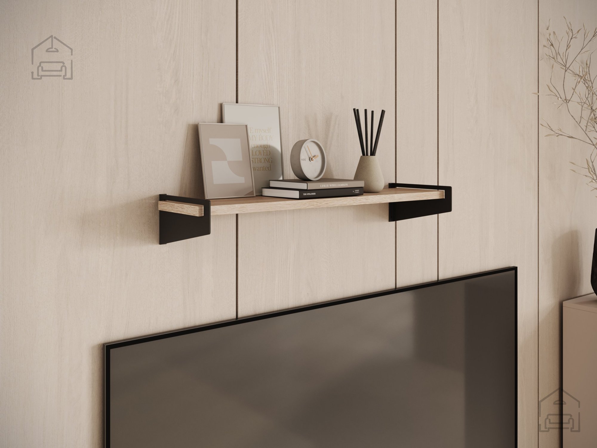 ADRK verbindet bei der Herstellung moderne Technologien mit präziser Materialbearbeitung. Das Wandregal Ivi ist so gestaltet, dass es Stabilität und Sicherheit in der Nutzung gewährleistet. Metallhalterungen stützen die Konstruktion, verleihen ihr einen industriellen Look und zusätzliche Festigkeit. Jedes Detail ist sorgfältig ausgearbeitet – von den glatt geschliffenen Kanten bis zur gleichmäßigen Dekoroberfläche –, was für ein stimmiges Gesamtbild sorgt, auch bei näherer Betrachtung.