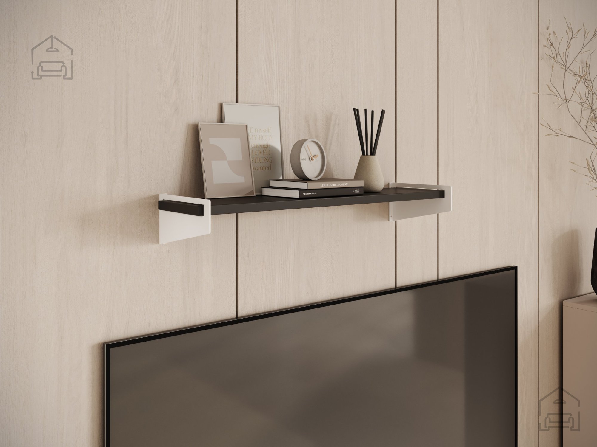 Die 16 mm starke Platte sorgt für Stabilität und verhindert ein Durchbiegen, selbst wenn Sie schwerere Gegenstände wie dicke Bücher oder dekorative Steinobjekte darauf platzieren. Die Metallhalterungen bieten zusätzliche Sicherheit – besonders dann, wenn das Regal über einem Sofa oder Bett angebracht wird.